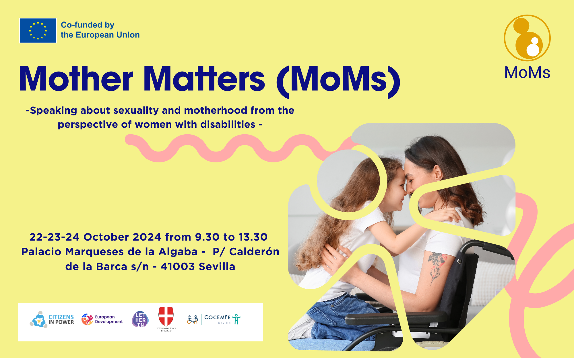 There are still many prejudices associated with the world of disability, especially when it comes to affection, sexuality or parenthood. Many women with disabilities are discouraged from motherhood and feel judged daily for their desire for autonomy. It is assumed that a woman with a disability is not able to have a career, a social and emotional life, get pregnant and raise children. Those who want to do so are left alone and look for professionals without specialised training. Article 23 of the United Nations Convention on the Rights of Persons with Disabilities states: “States Parties shall take effective and appropriate measures to eliminate discrimination against persons with disabilities in all matters relating to marriage, family, parenthood and relationships and to put them on an equal footing with others." The MoMs project aims to support a society that is sensitised to the issue and more culturally open-minded. The project also aims to educate people with disabilities and health and education professionals about the rights of people with disabilities through accessible materials. Become a part of our mission to raise awareness, break down barriers and promote best practices. Together, let’s create a future where motherhood is understood, celebrated and accessible for women with disabilities and their communities across Europe.