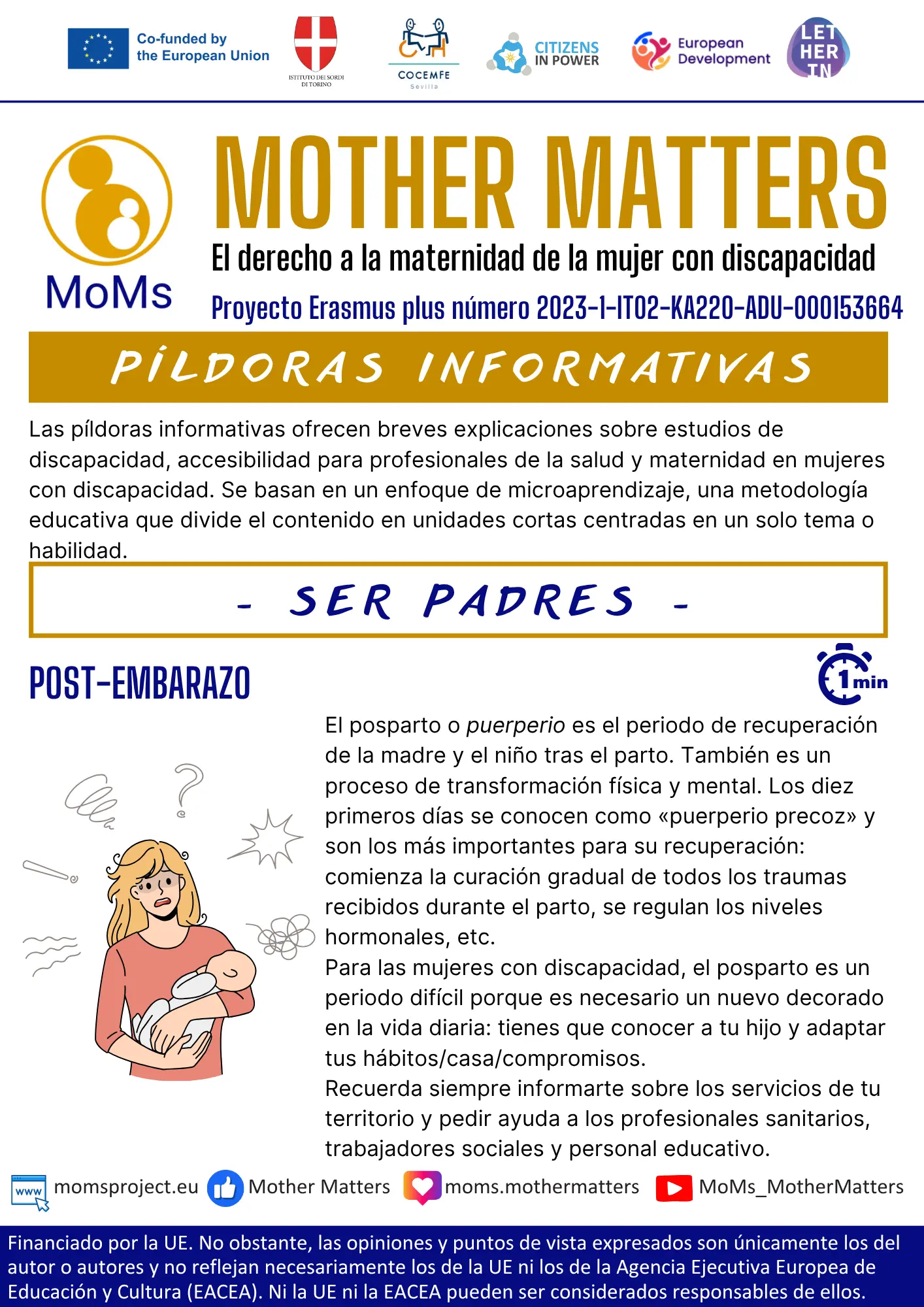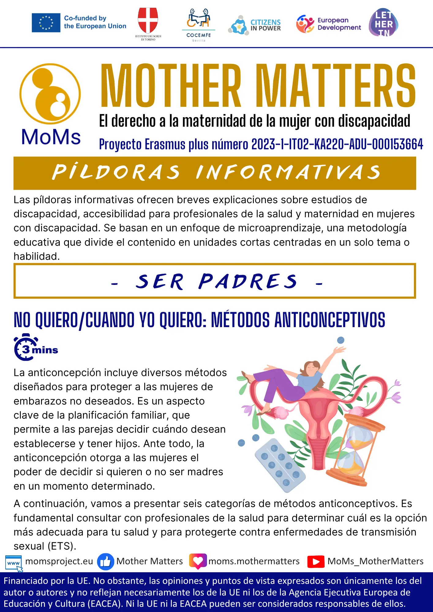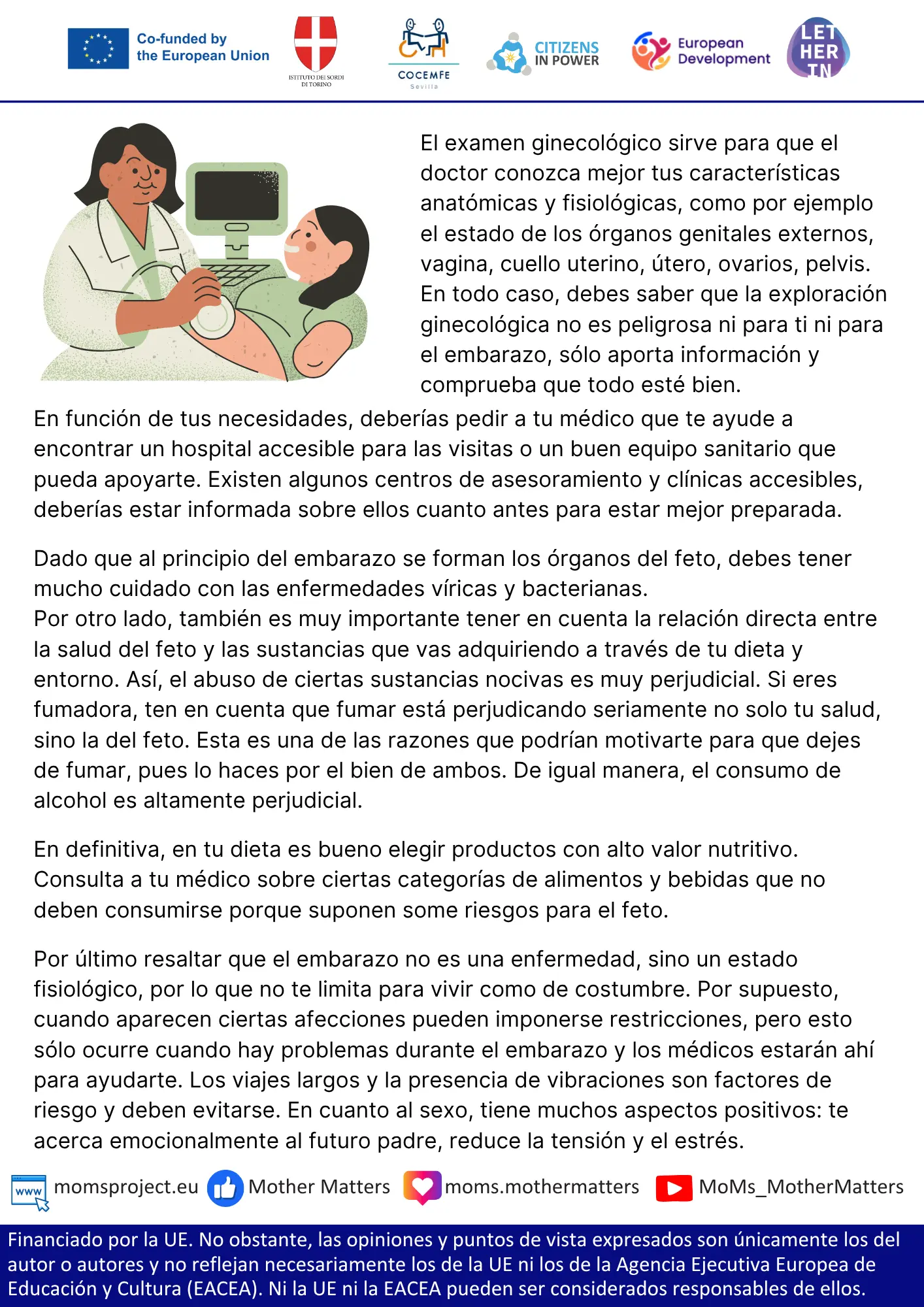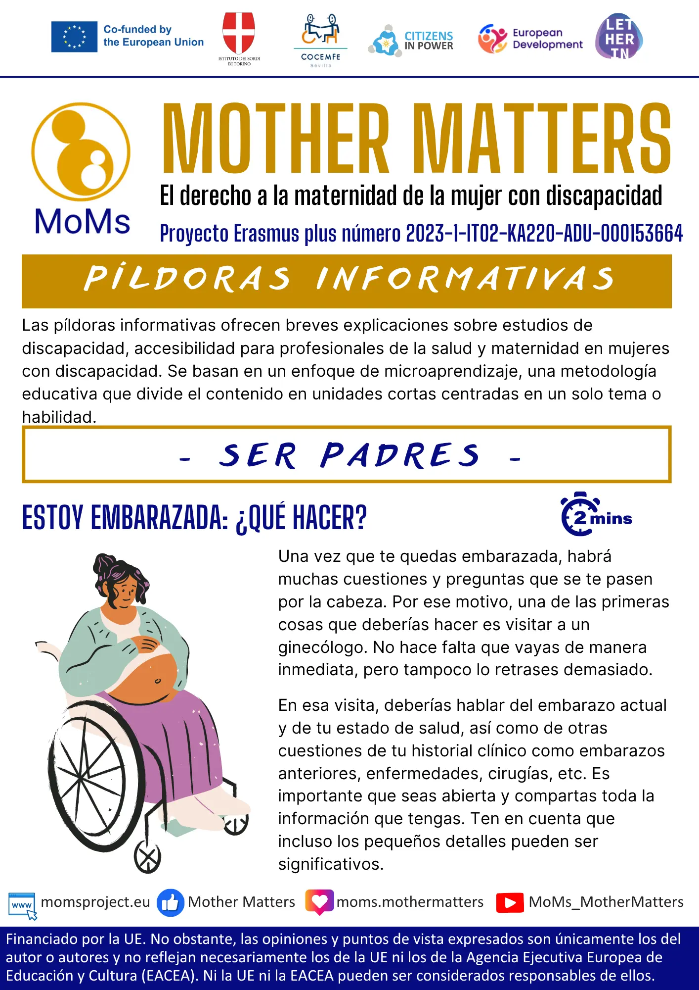Aquí encontrarás una guía sobre la maternidad. Los temas incluyen la estabilidad de las relaciones, los mitos del embarazo, los riesgos, el parto y el postparto. Pronto encontrarás también recomendaciones sobre diseño universal y vídeos en lengua de signos.