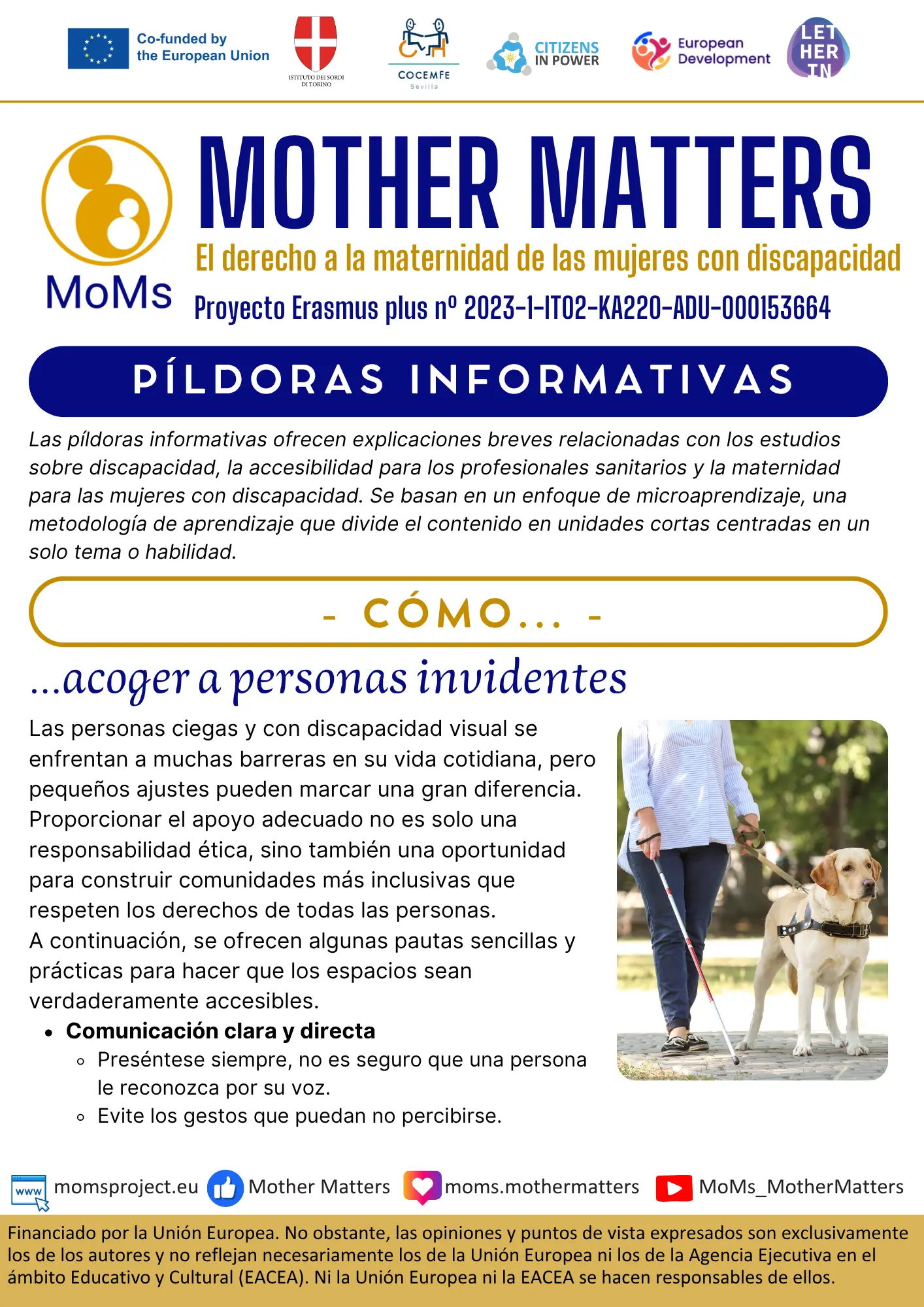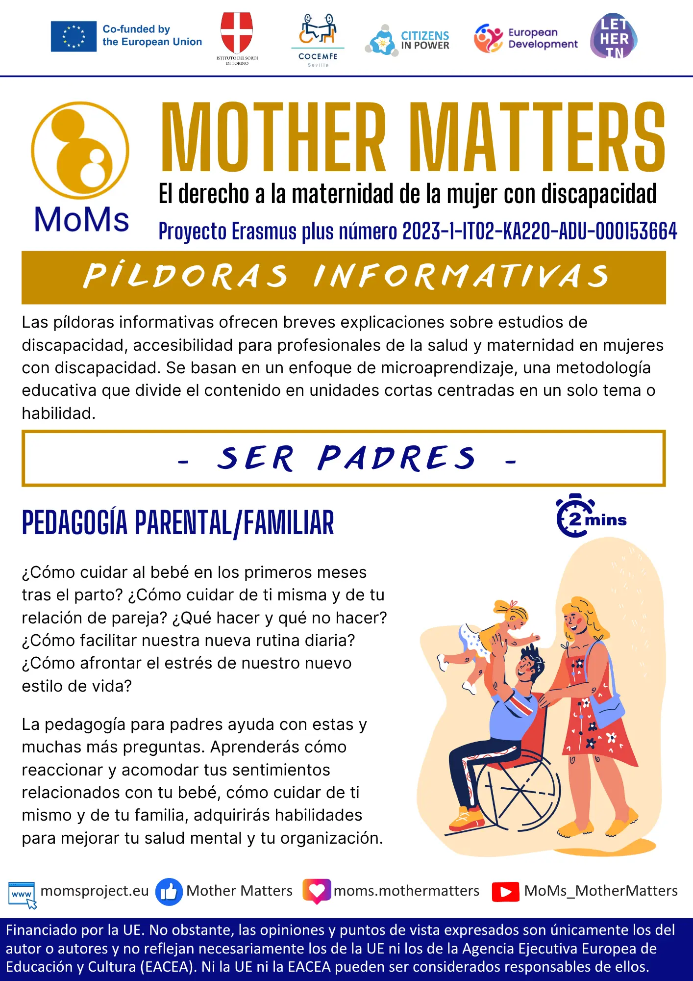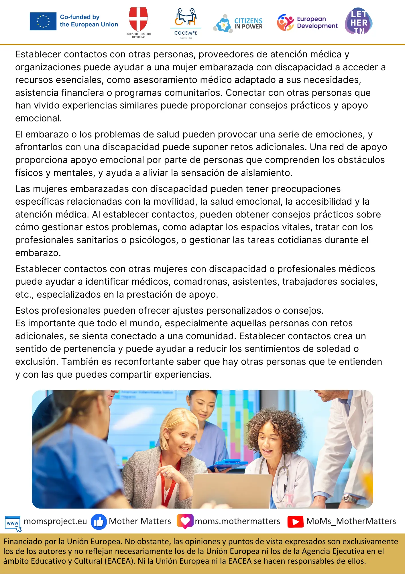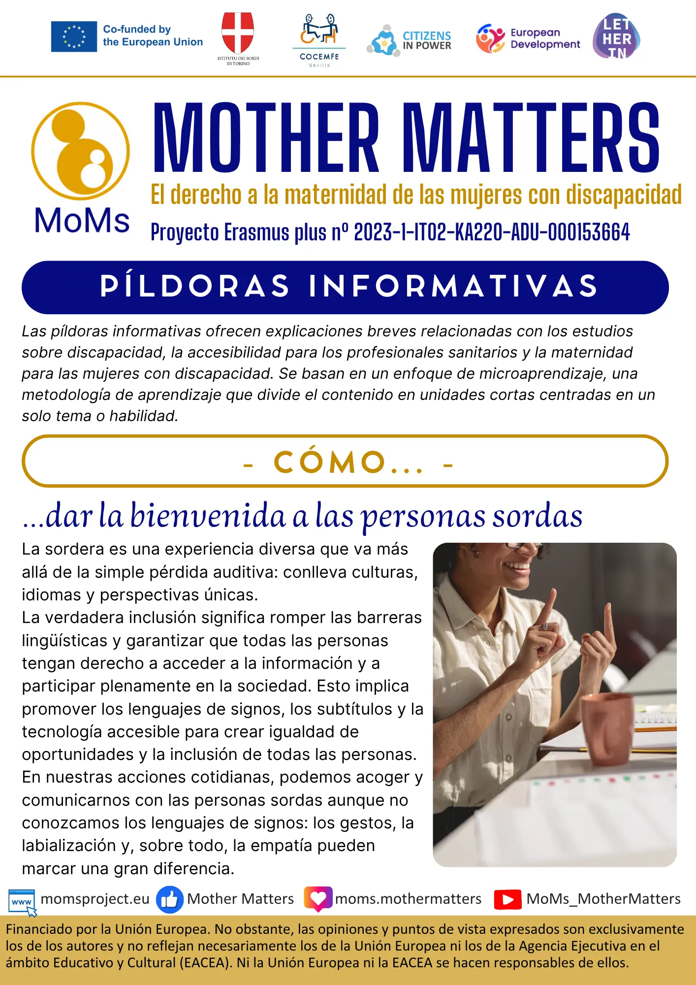 Aquí encontrarás una guía sobre la maternidad. Los temas incluyen la estabilidad de las relaciones, los mitos del embarazo, los riesgos, el parto y el postparto. Pronto encontrarás también recomendaciones sobre diseño universal y vídeos en lengua de signos.