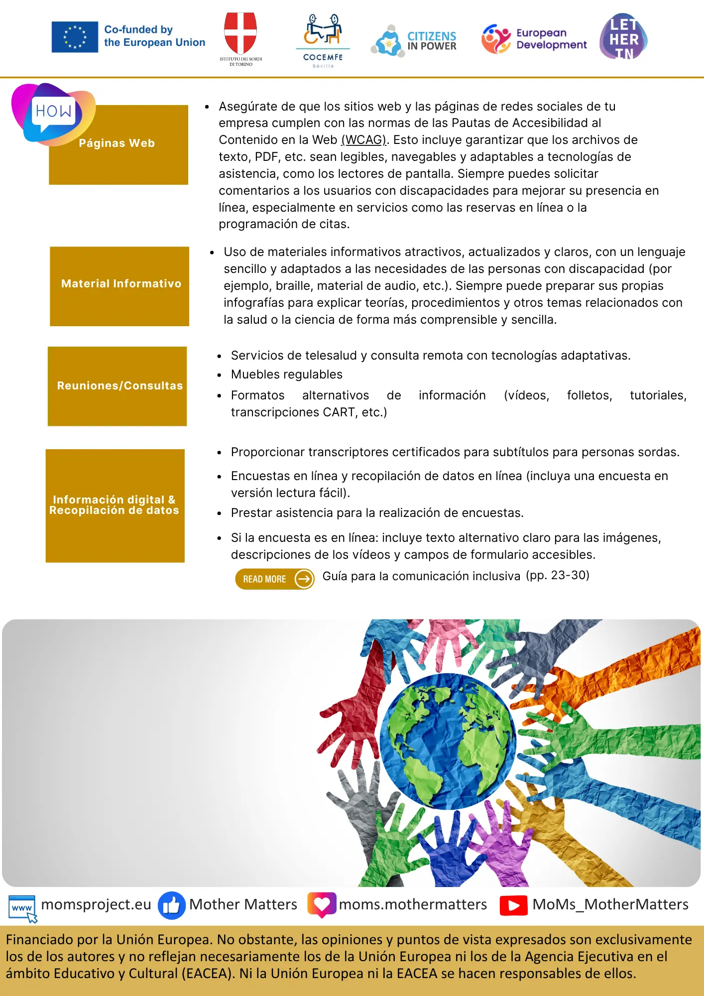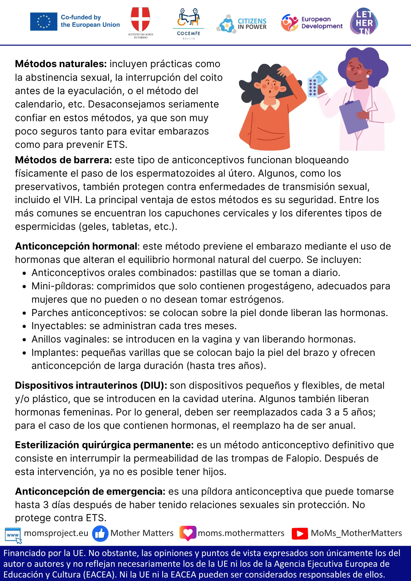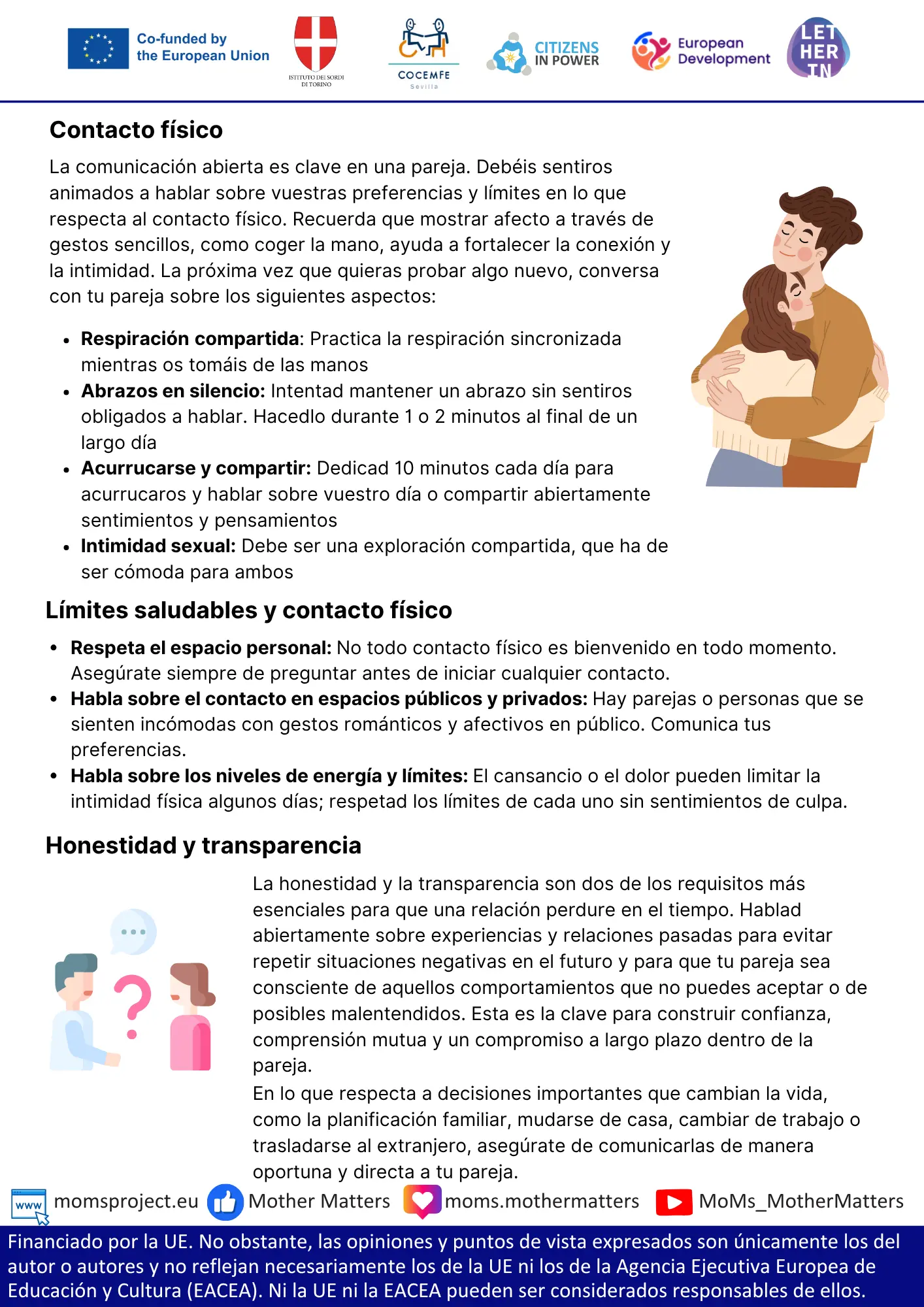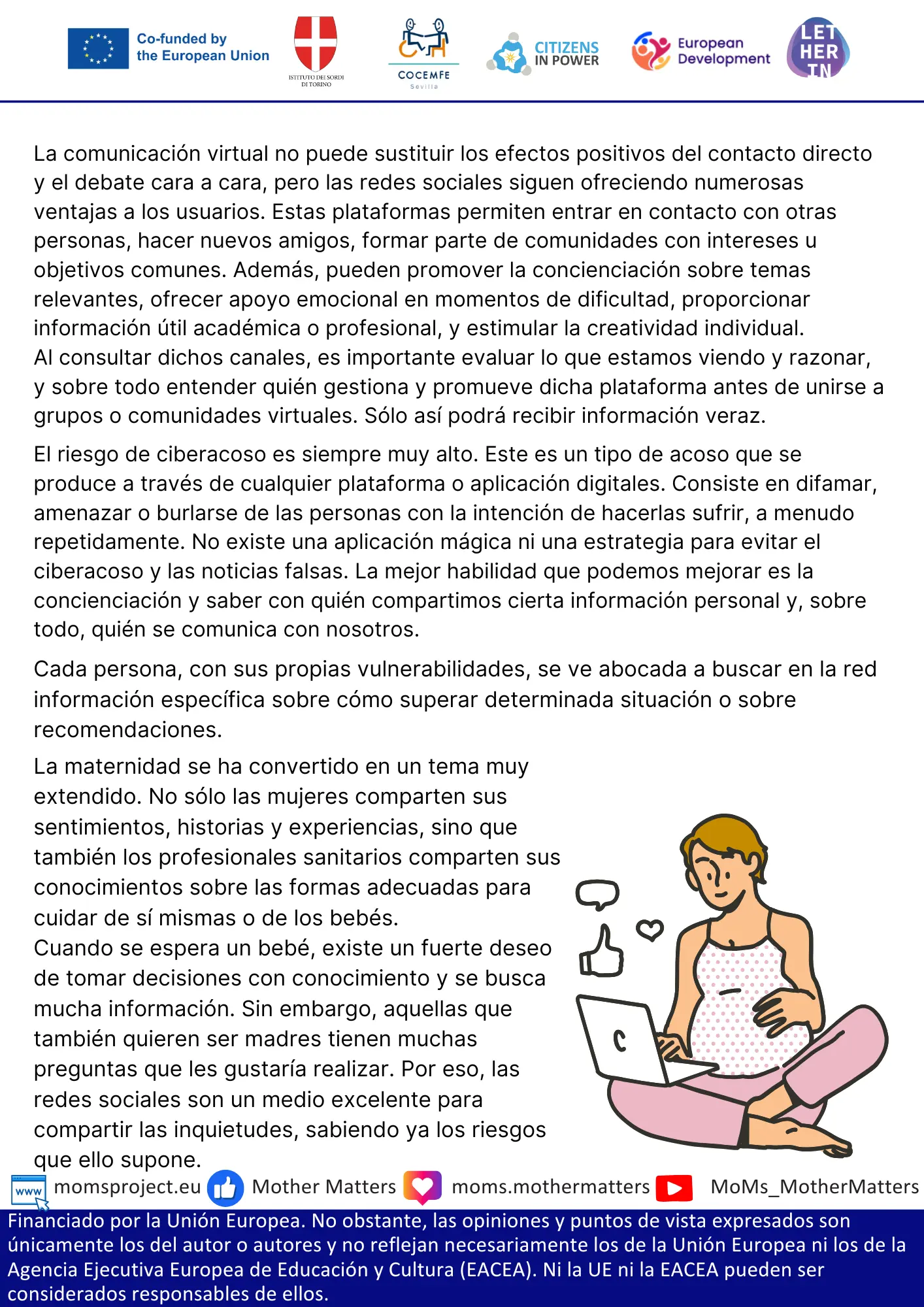 Aquí encontrarás una guía sobre la maternidad. Los temas incluyen la estabilidad de las relaciones, los mitos del embarazo, los riesgos, el parto y el postparto. Pronto encontrarás también recomendaciones sobre diseño universal y vídeos en lengua de signos.