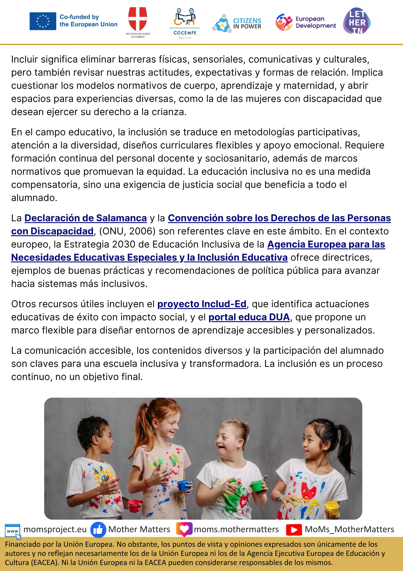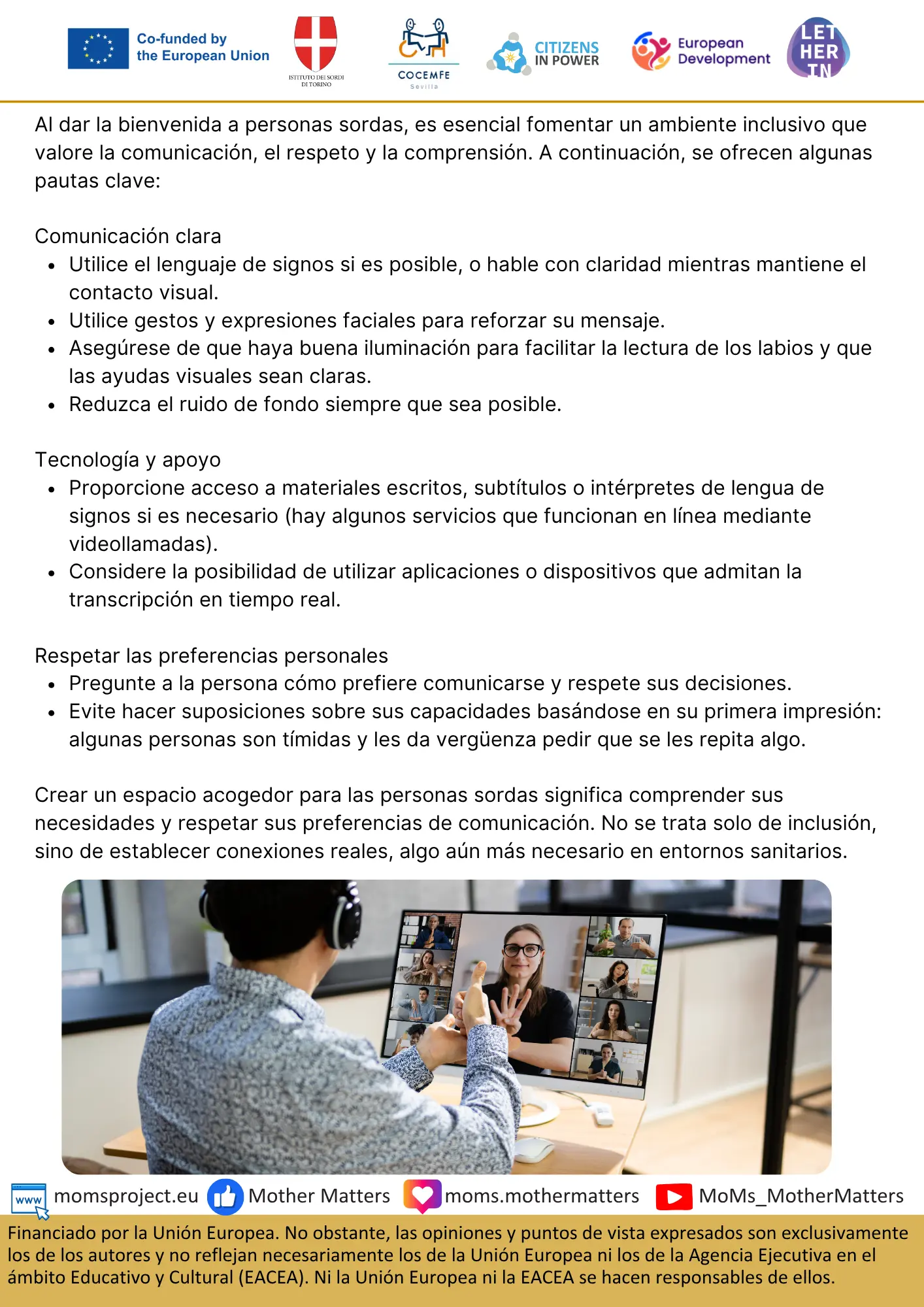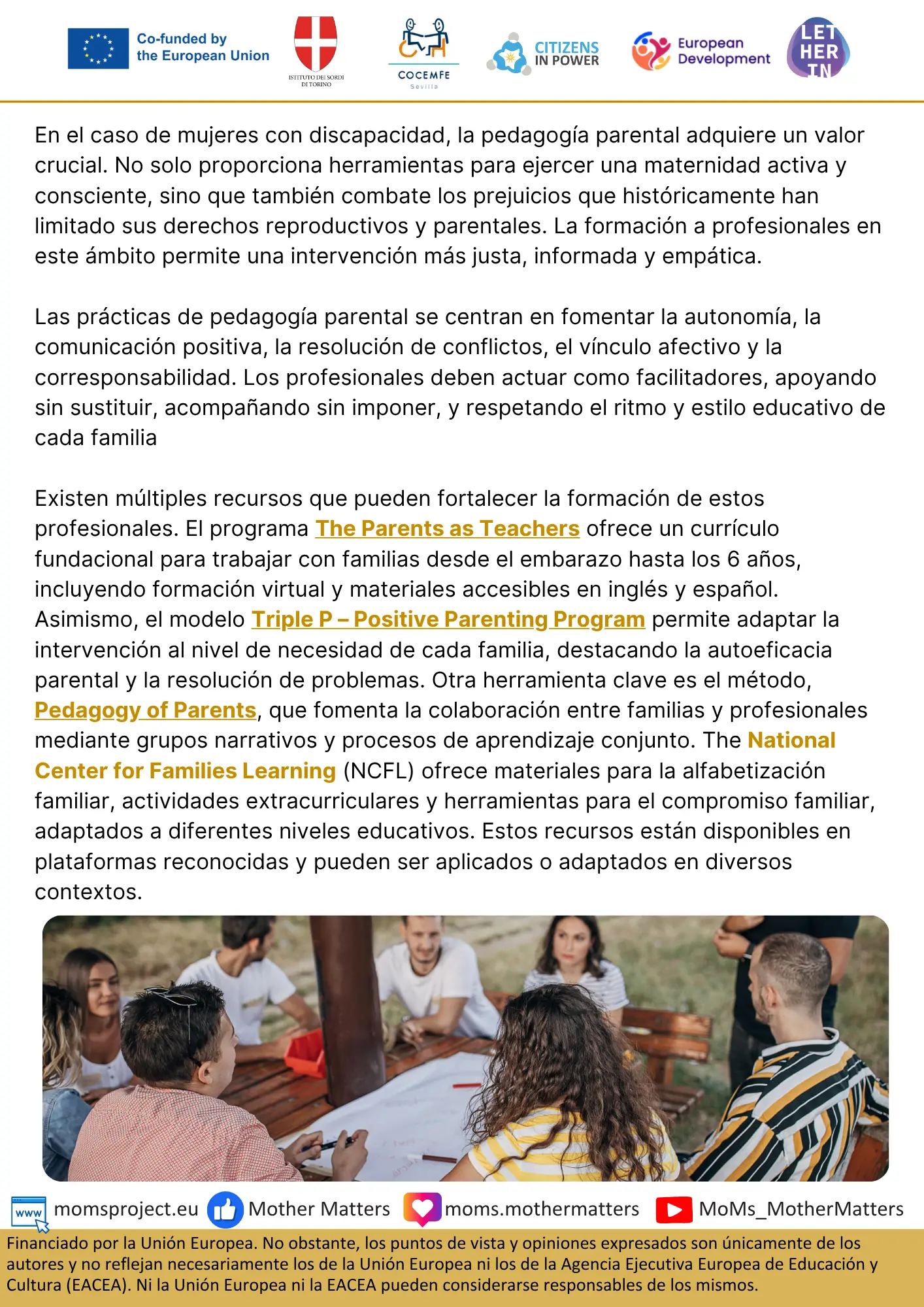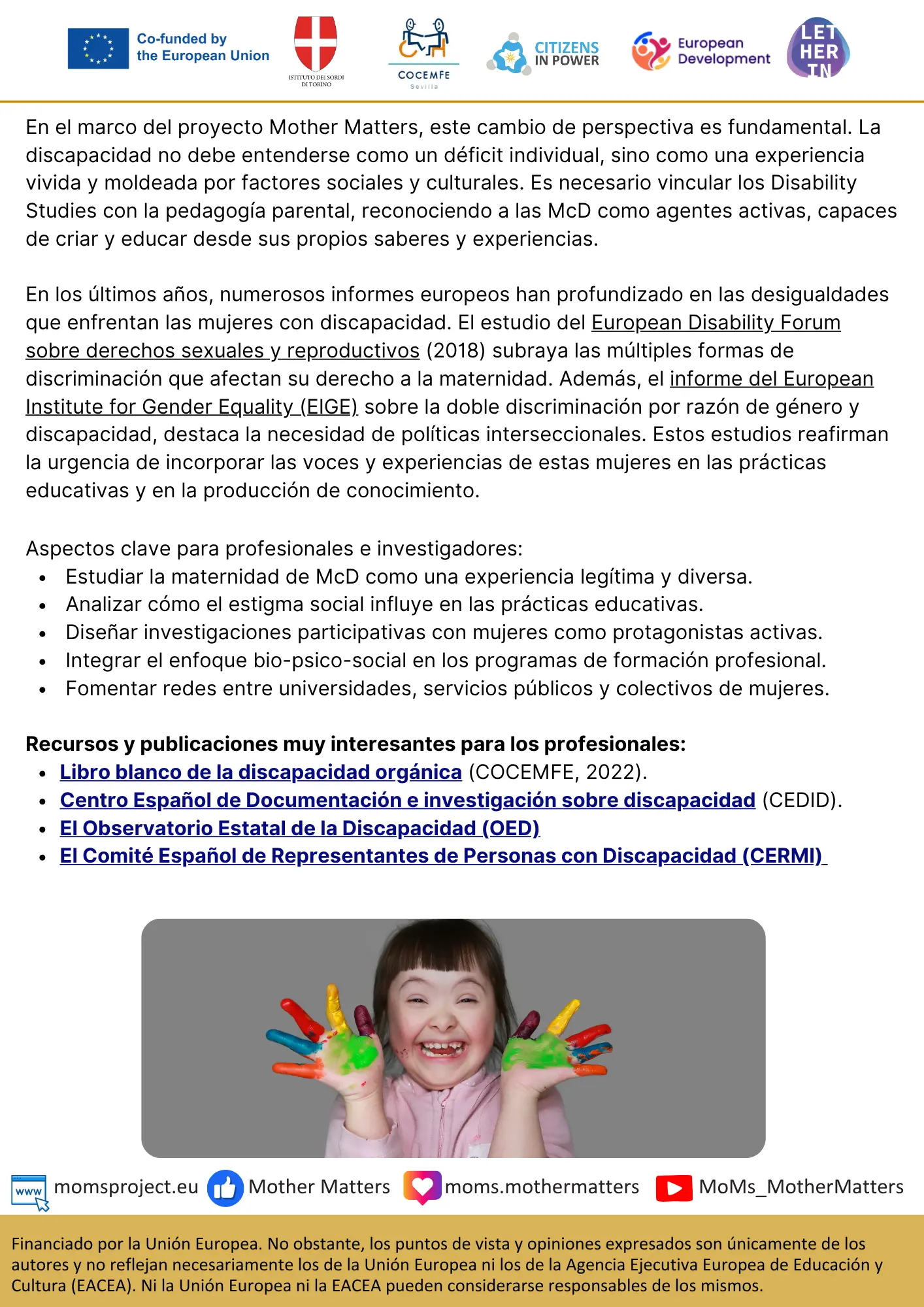 Aquí encontrarás una guía sobre la maternidad. Los temas incluyen la estabilidad de las relaciones, los mitos del embarazo, los riesgos, el parto y el postparto. Pronto encontrarás también recomendaciones sobre diseño universal y vídeos en lengua de signos.
