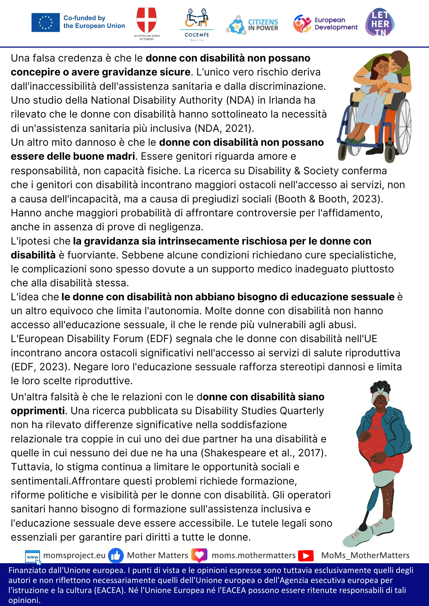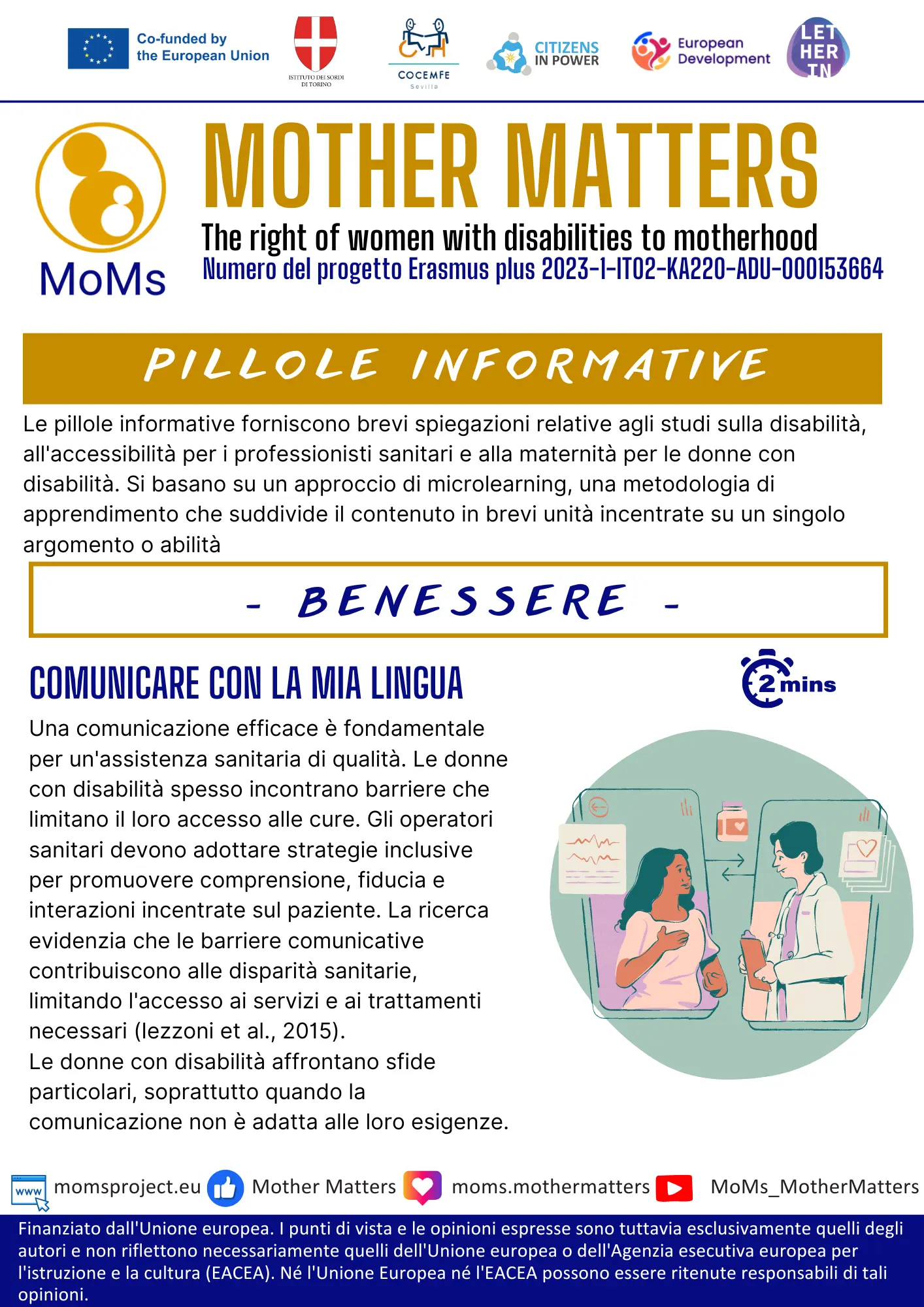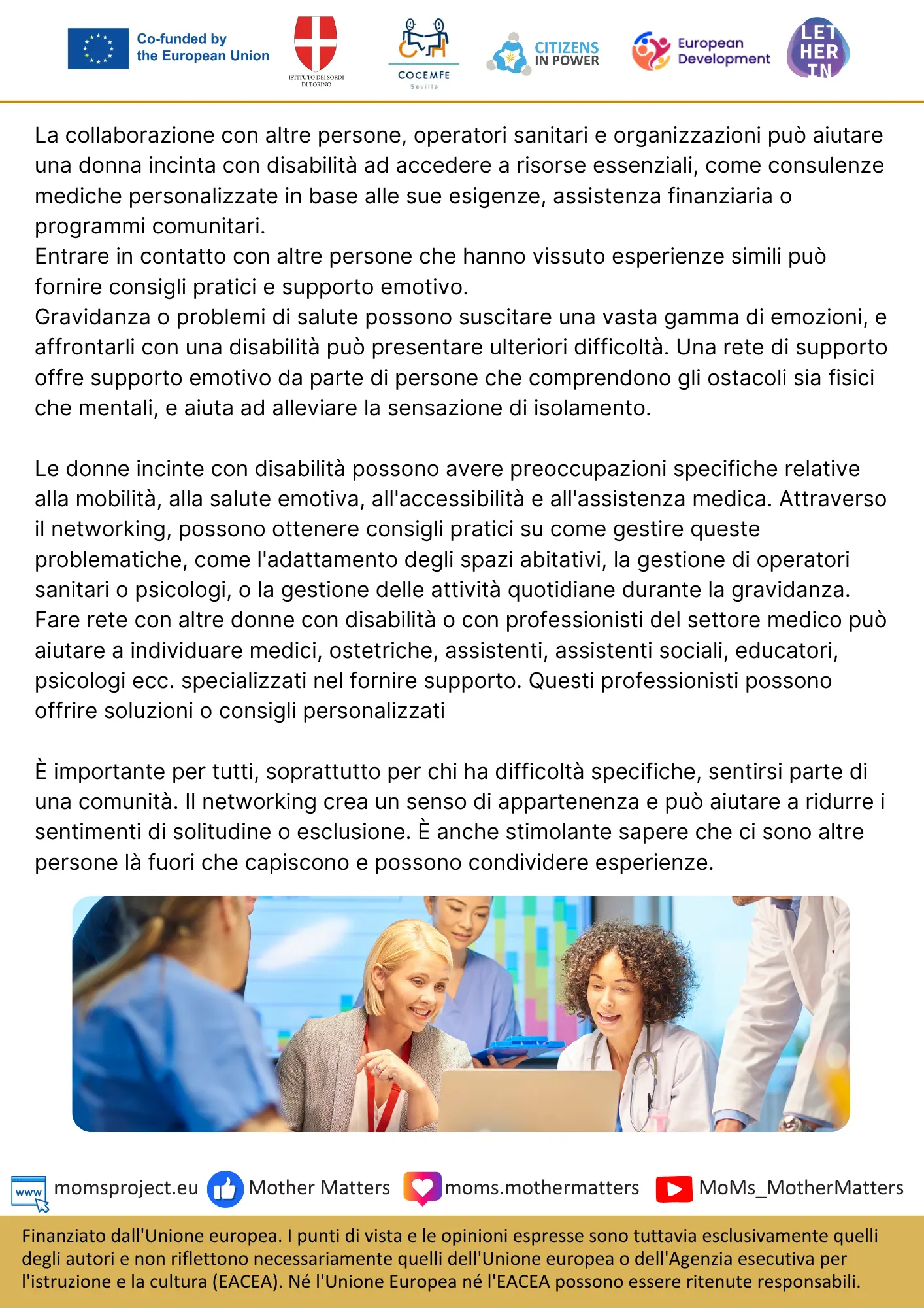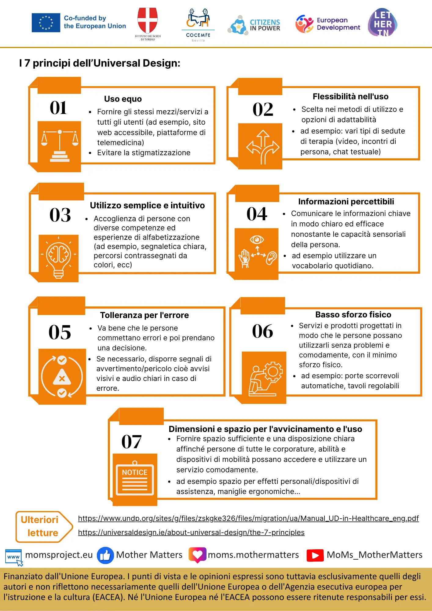 Qui troverai una guida alla maternità. Gli argomenti includono stabilità relazionale, miti sulla gravidanza, rischi, parto e puerperio. Presto troverai anche consigli per il design universale e video nelle Lingue dei Segni!
