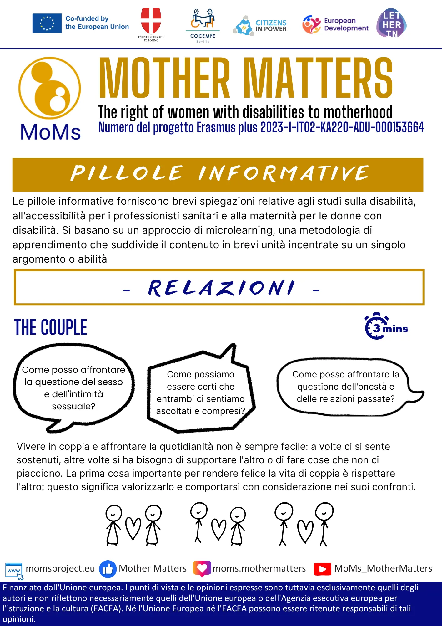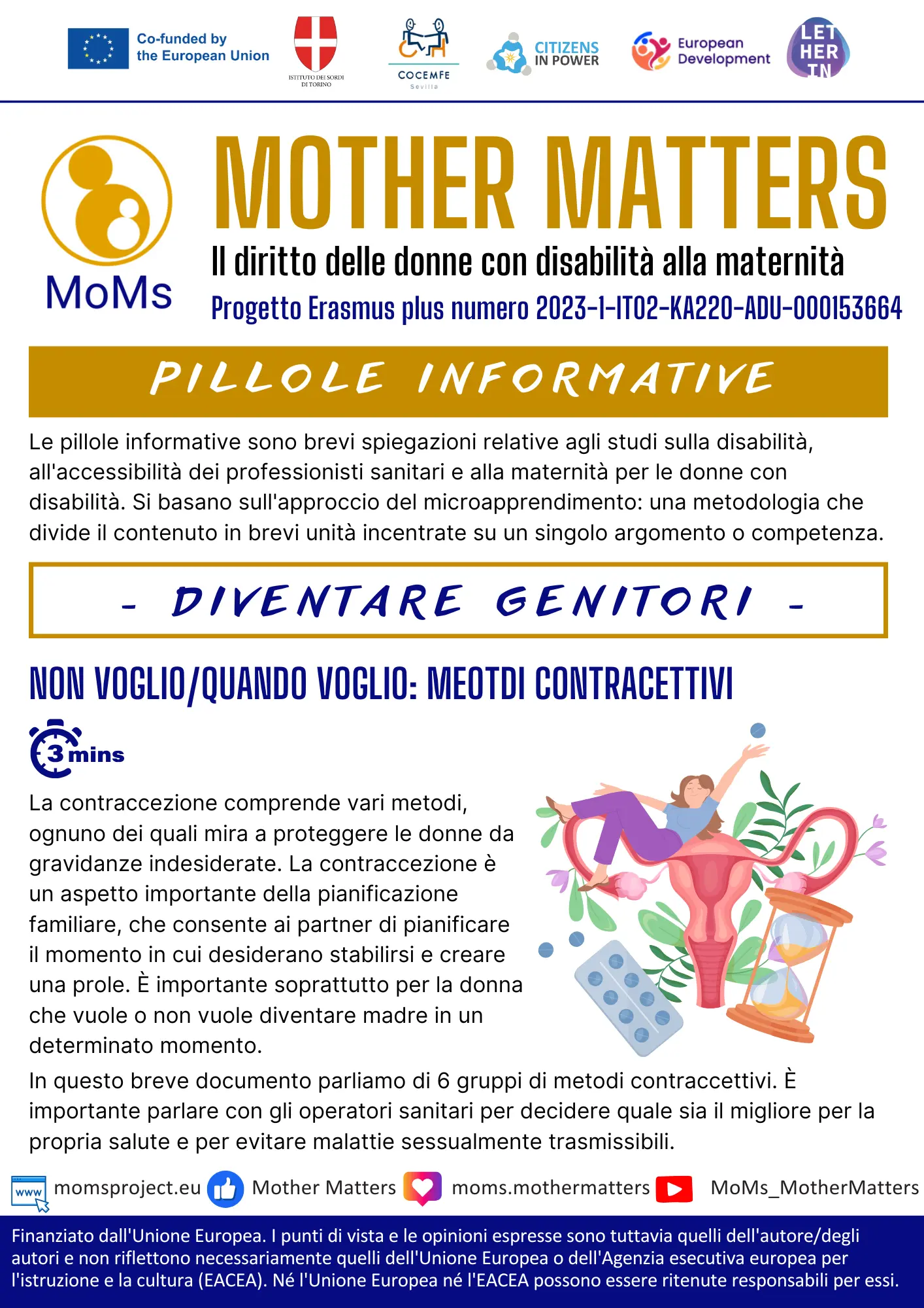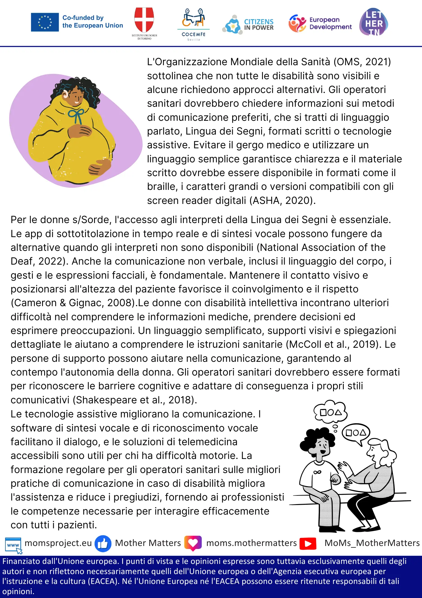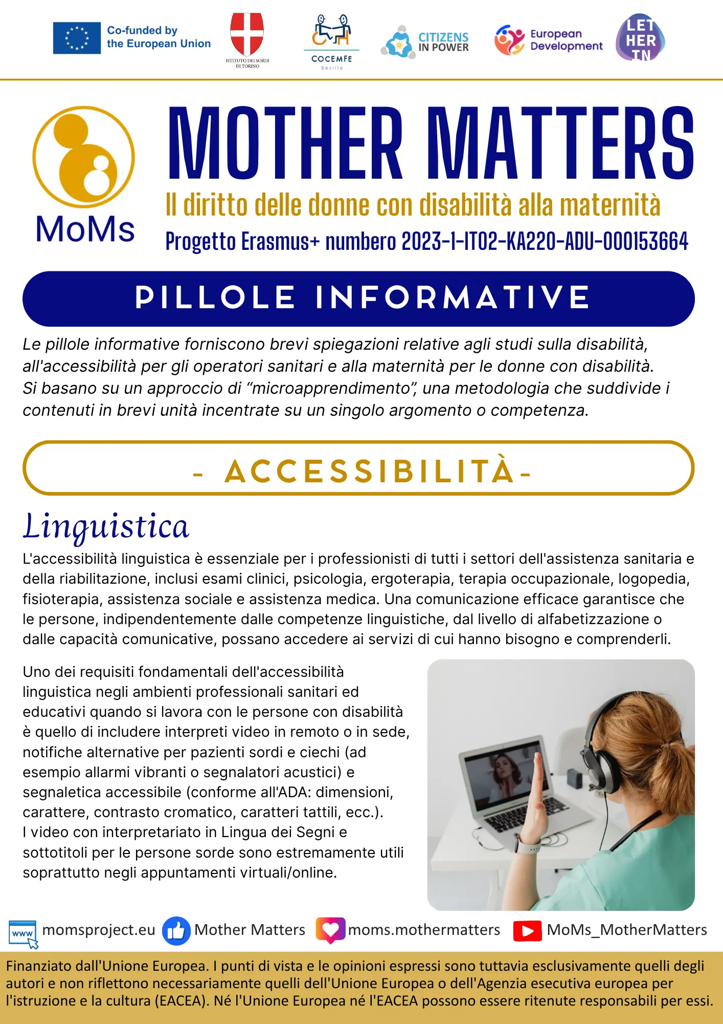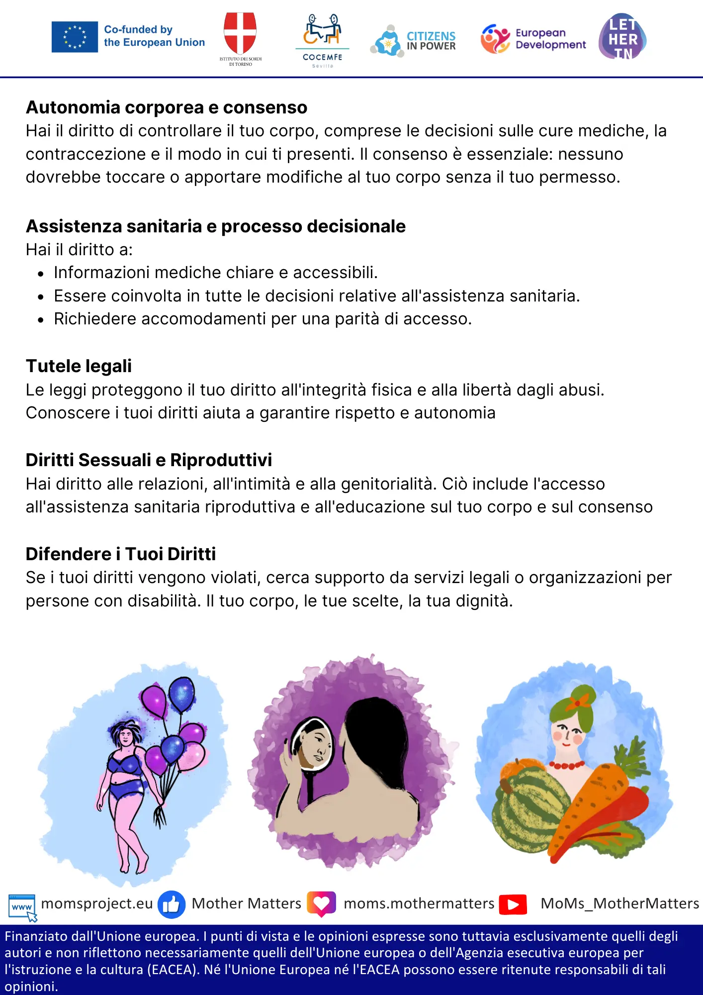 Qui troverai una guida alla maternità. Gli argomenti includono stabilità relazionale, miti sulla gravidanza, rischi, parto e puerperio. Presto troverai anche consigli per il design universale e video nelle Lingue dei Segni!