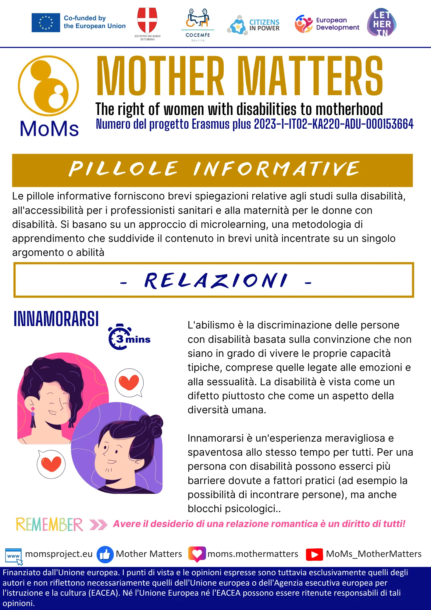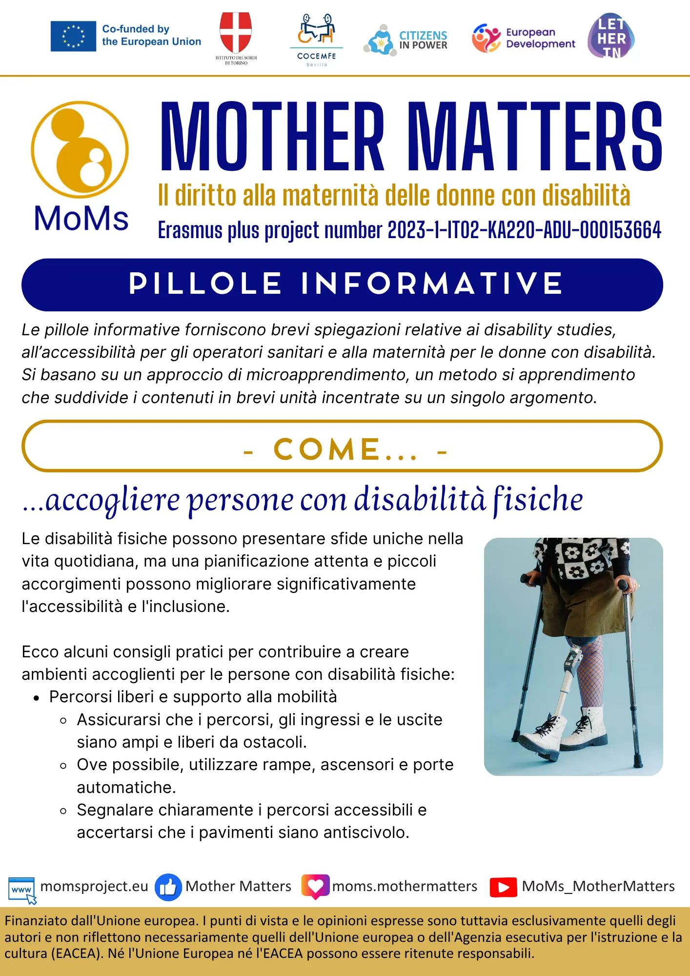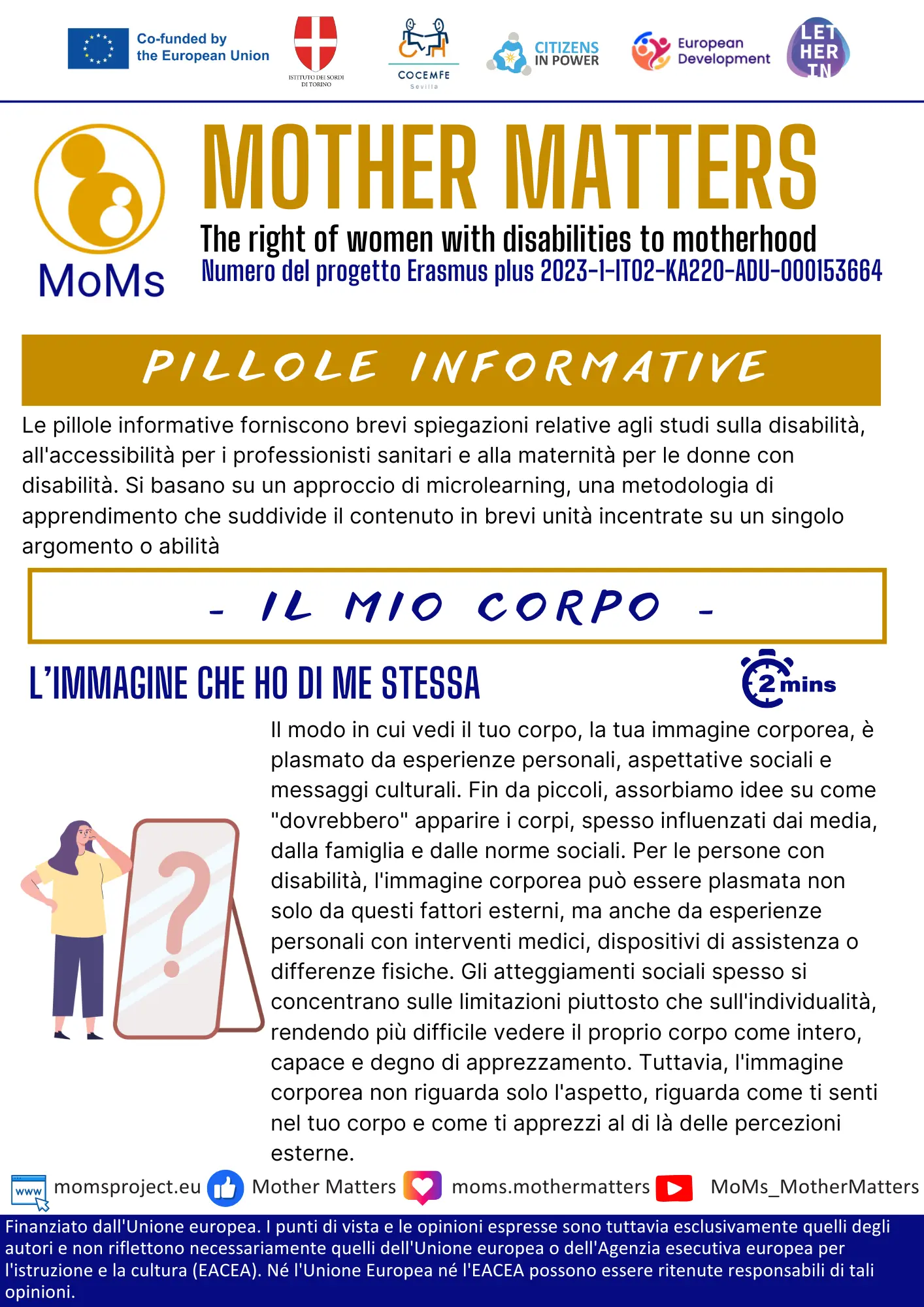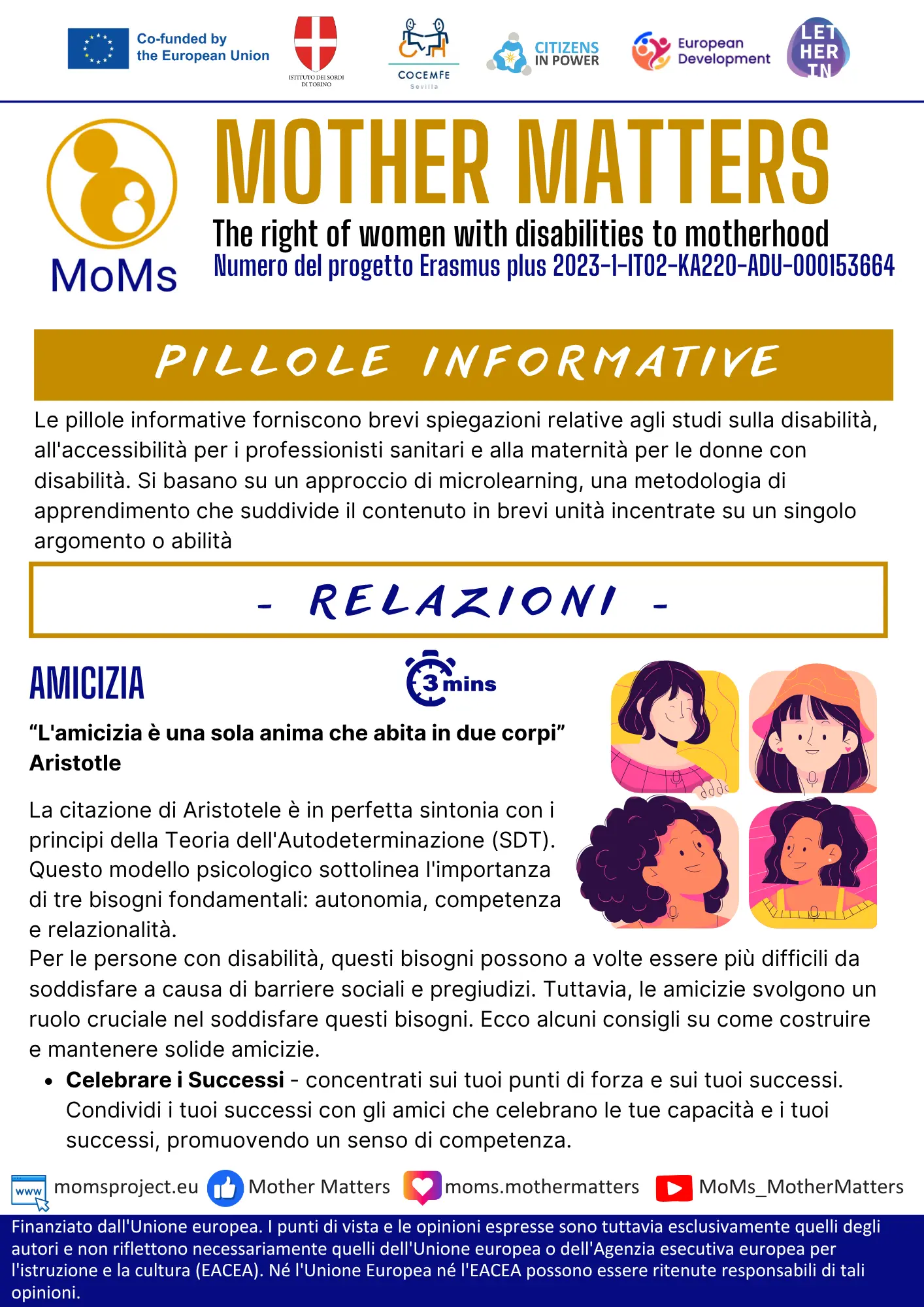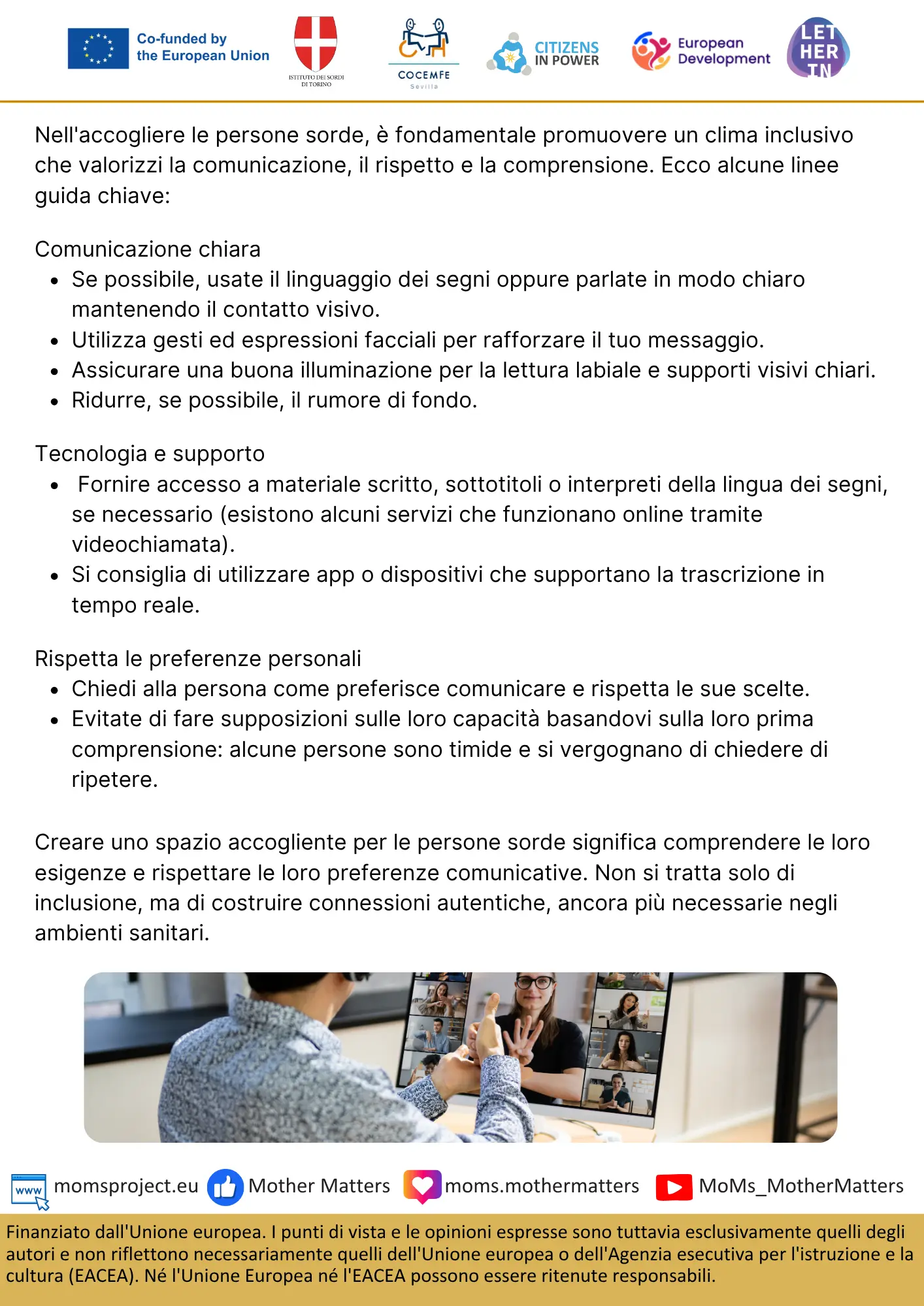 Qui troverai una guida alla maternità. Gli argomenti includono stabilità relazionale, miti sulla gravidanza, rischi, parto e puerperio. Presto troverai anche consigli per il design universale e video nelle Lingue dei Segni!