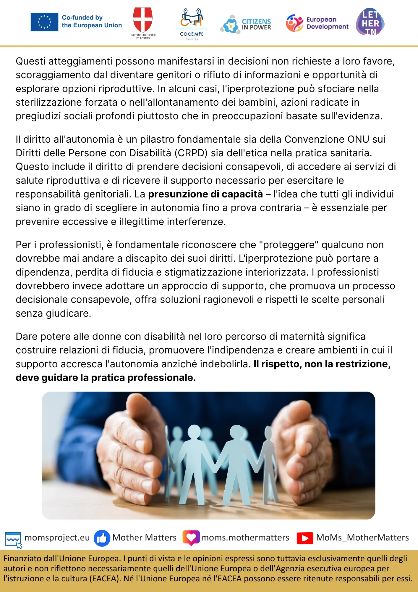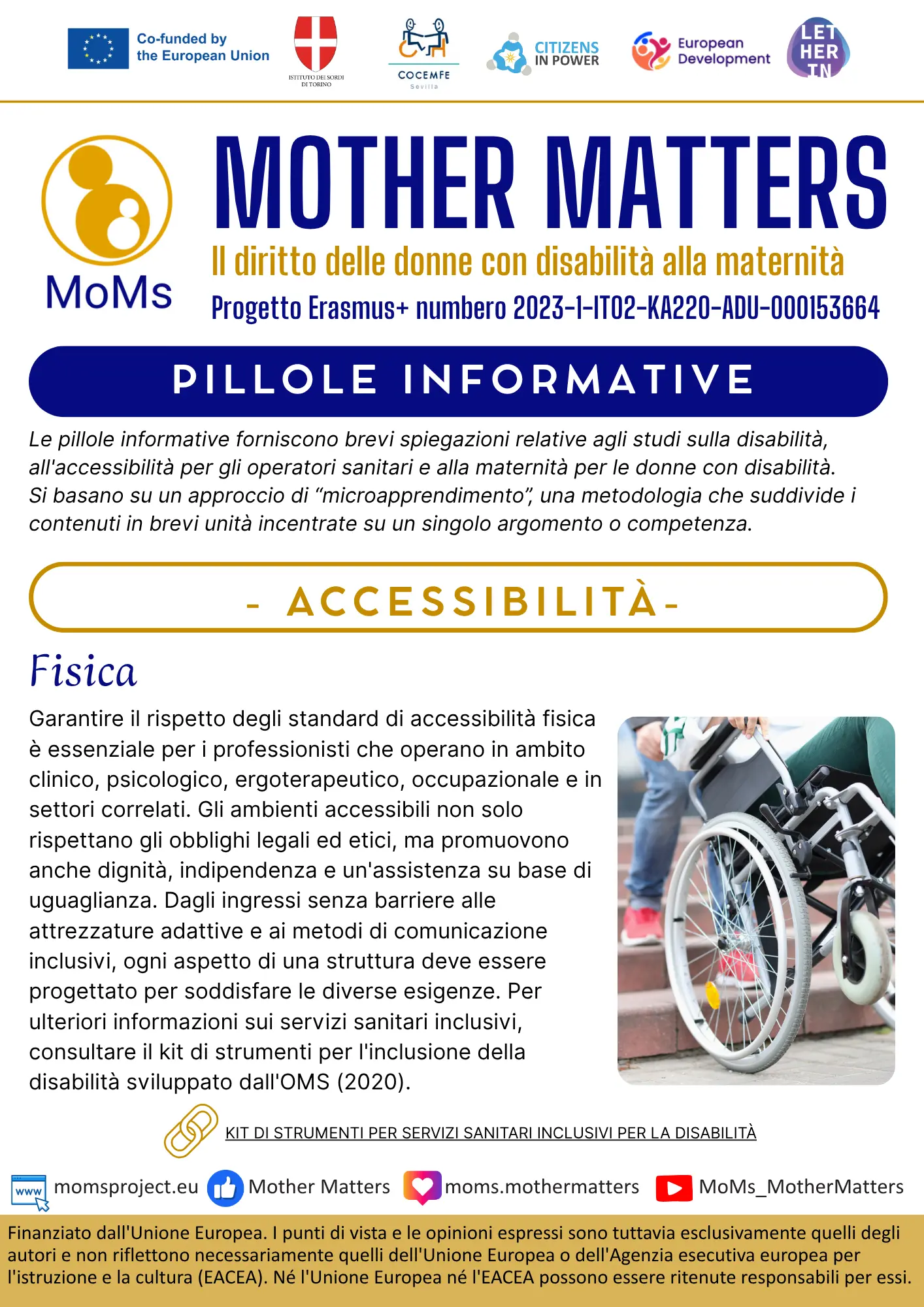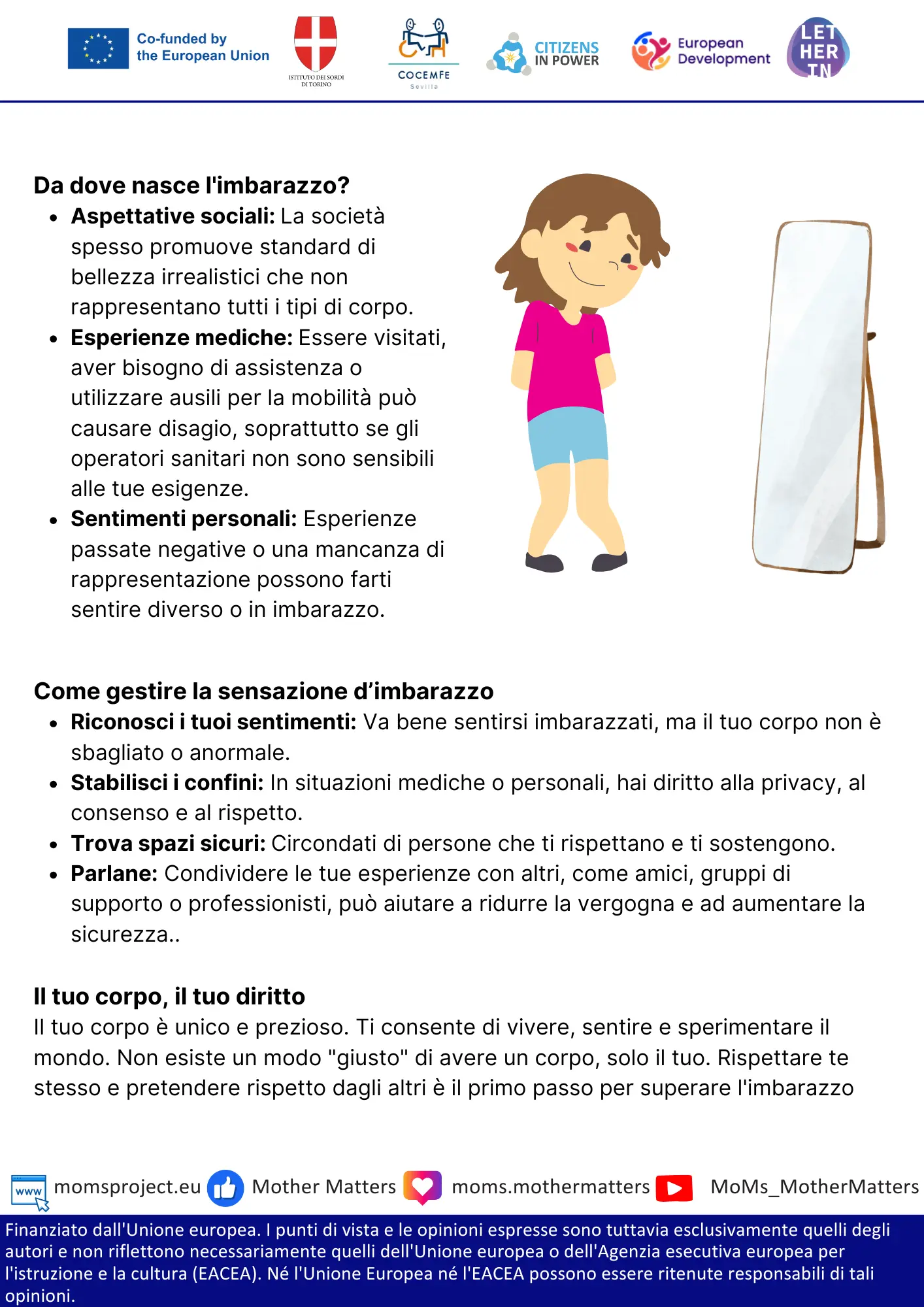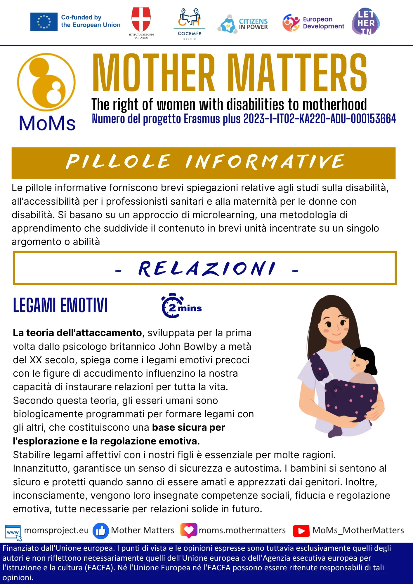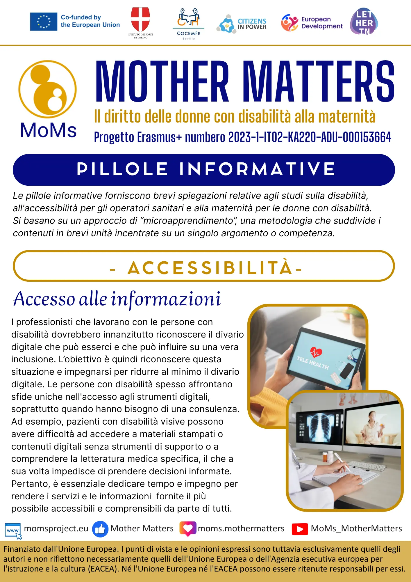 Qui troverai una guida alla maternità. Gli argomenti includono stabilità relazionale, miti sulla gravidanza, rischi, parto e puerperio. Presto troverai anche consigli per il design universale e video nelle Lingue dei Segni!
