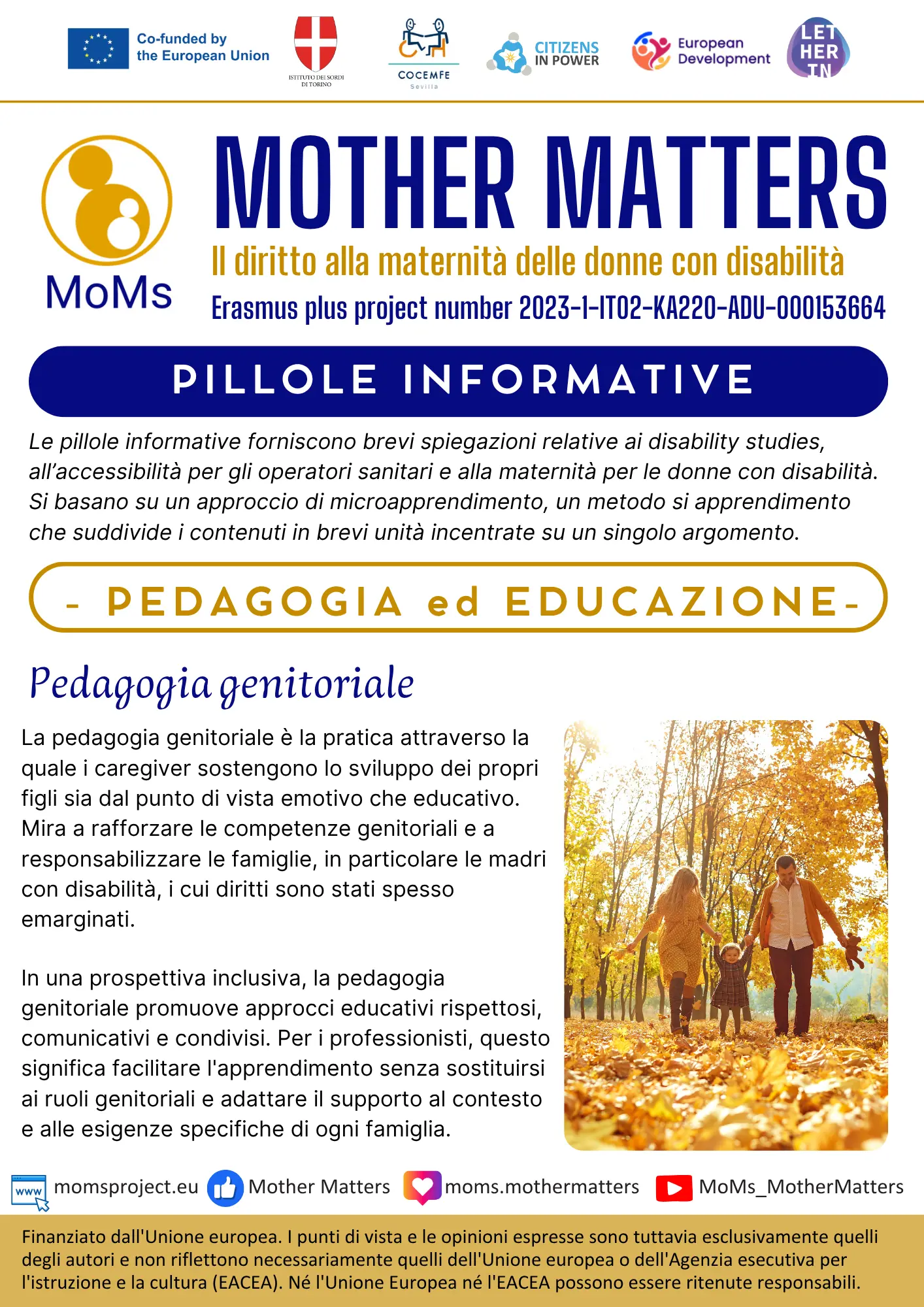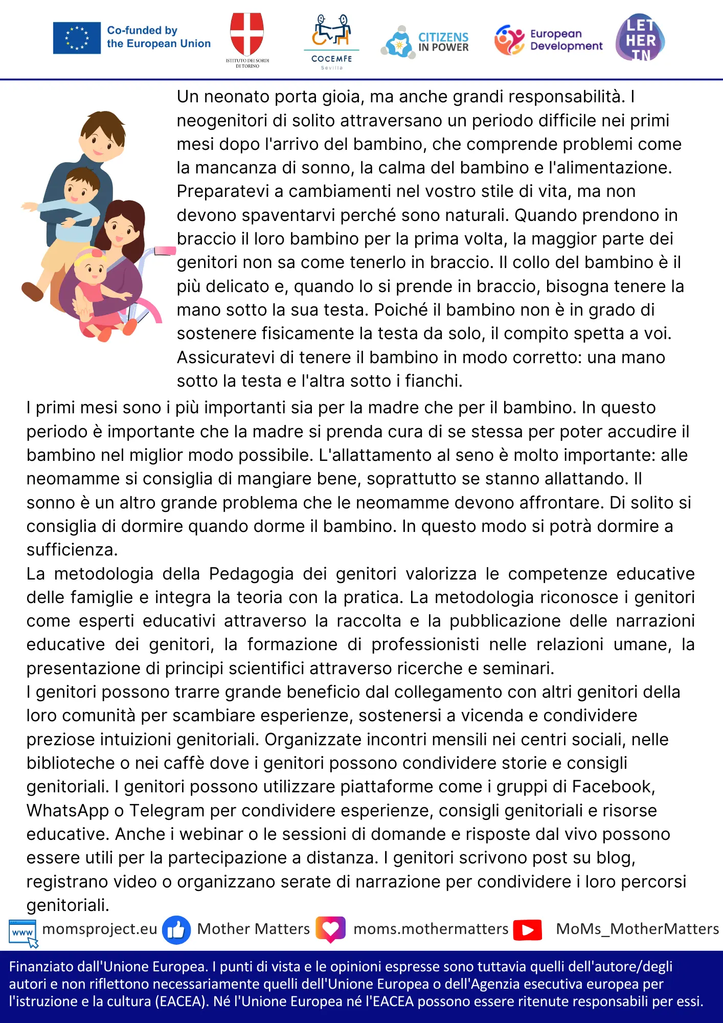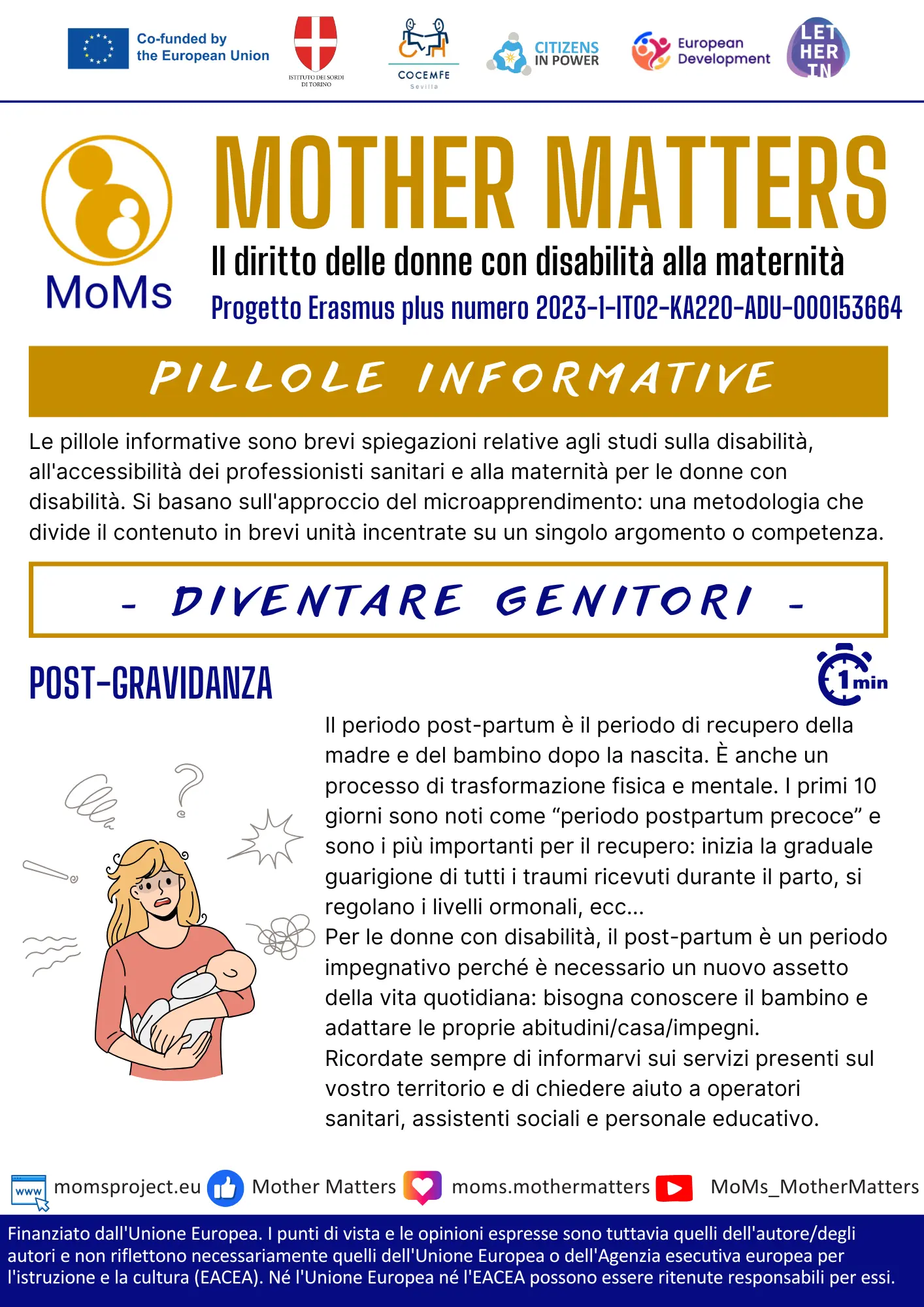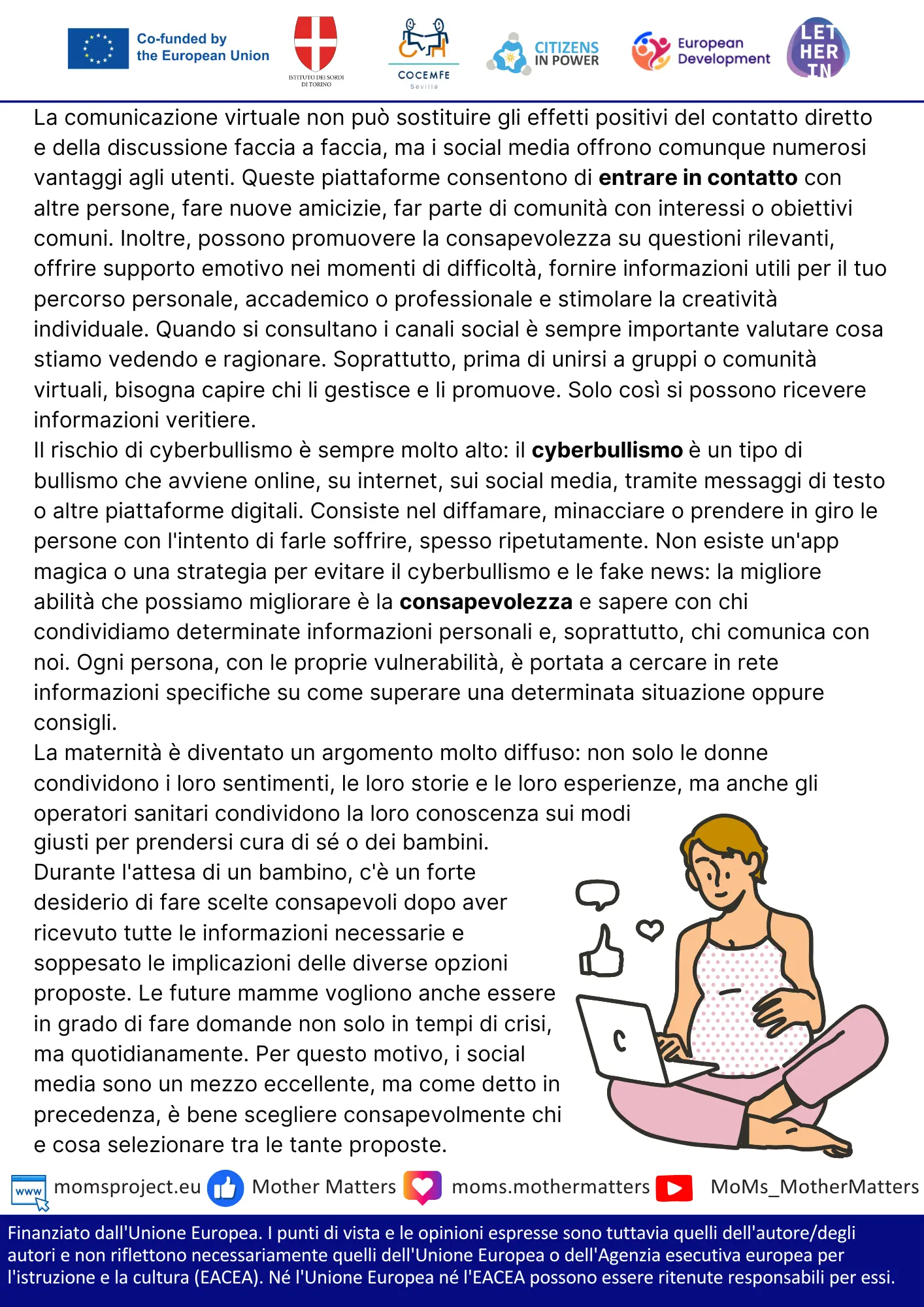 Qui troverai una guida alla maternità. Gli argomenti includono stabilità relazionale, miti sulla gravidanza, rischi, parto e puerperio. Presto troverai anche consigli per il design universale e video nelle Lingue dei Segni!
