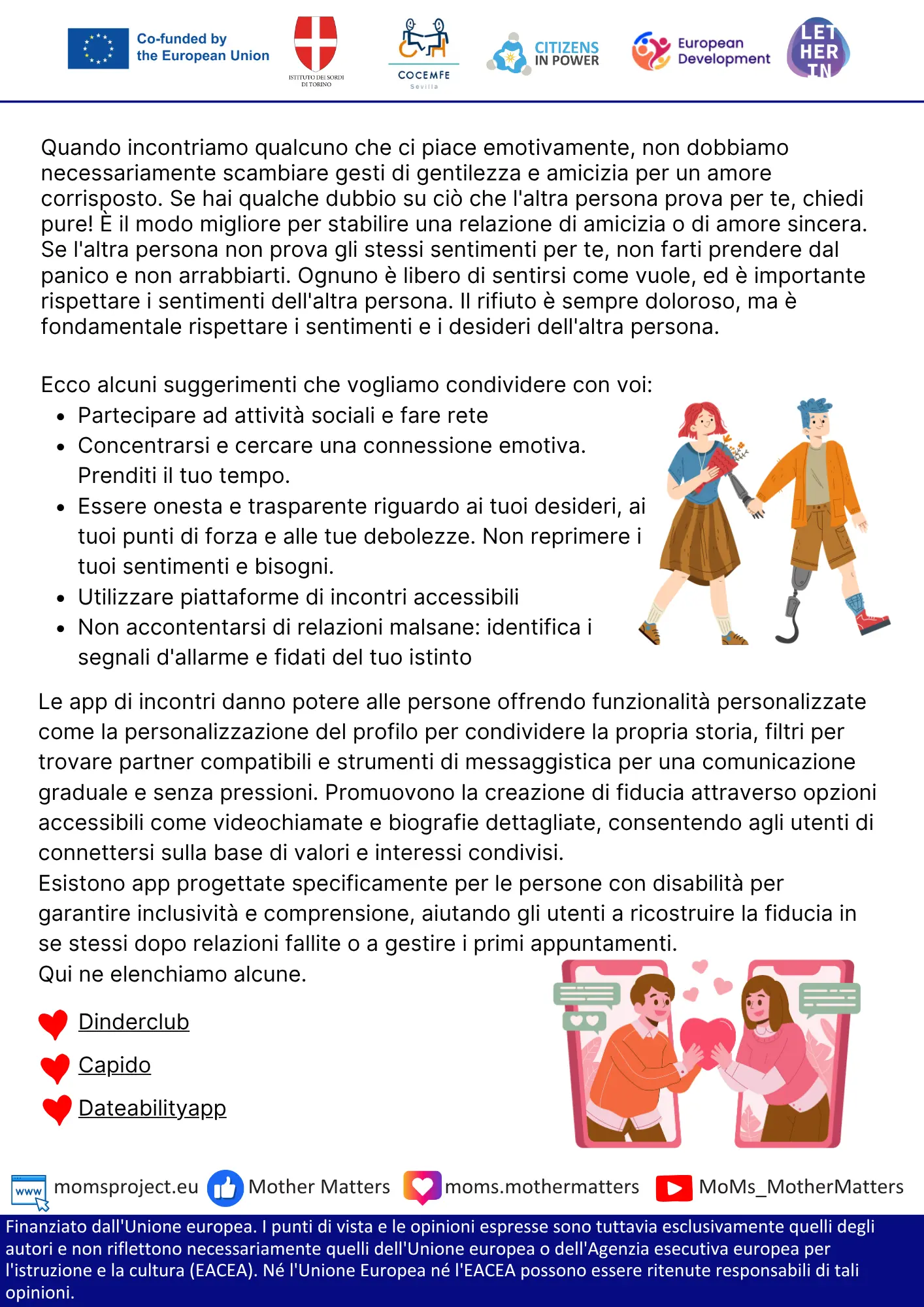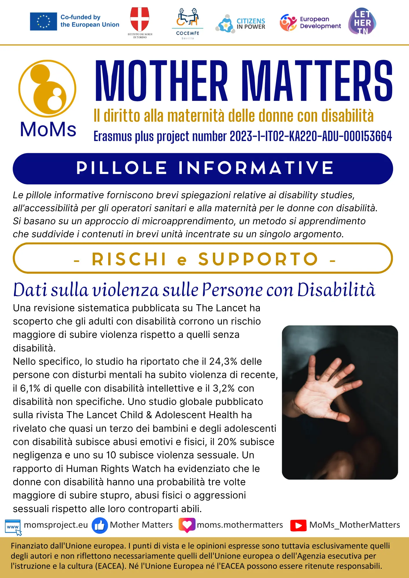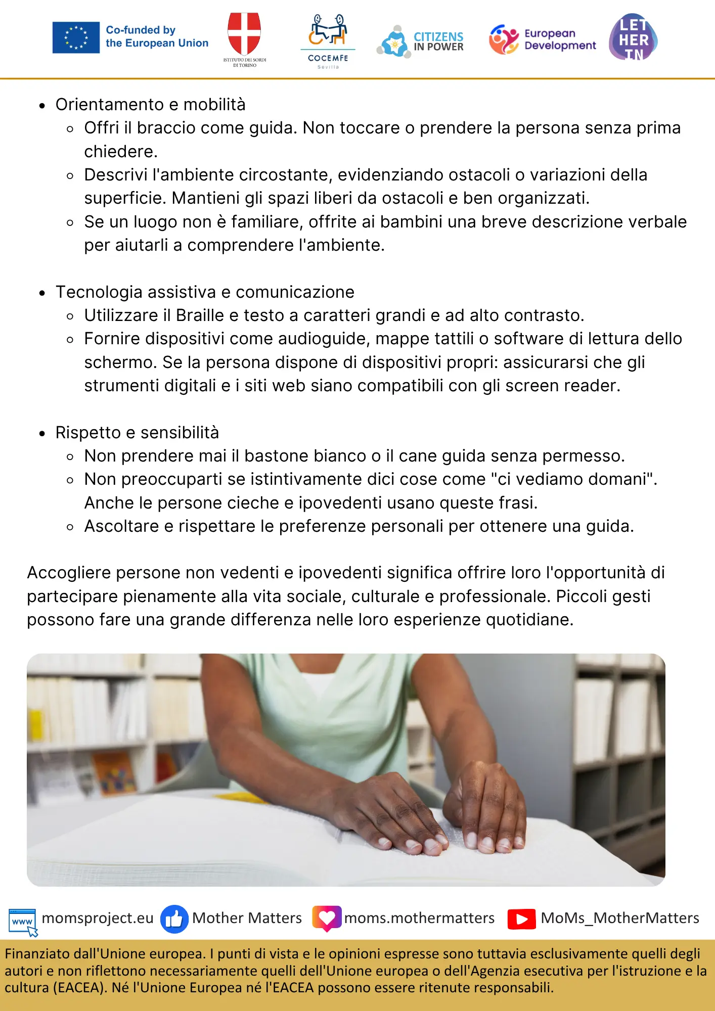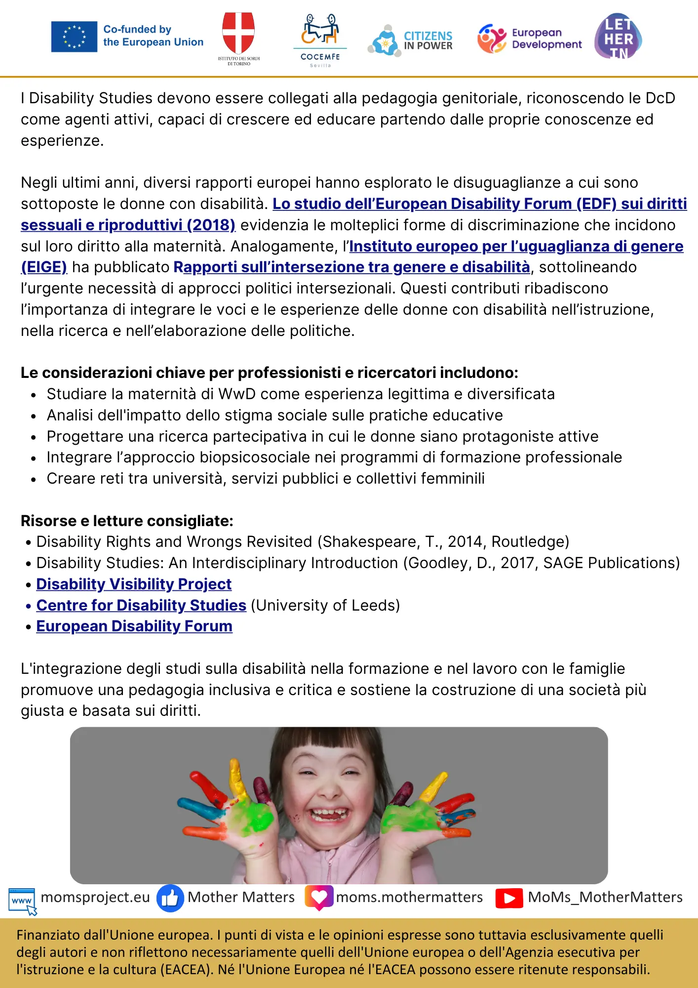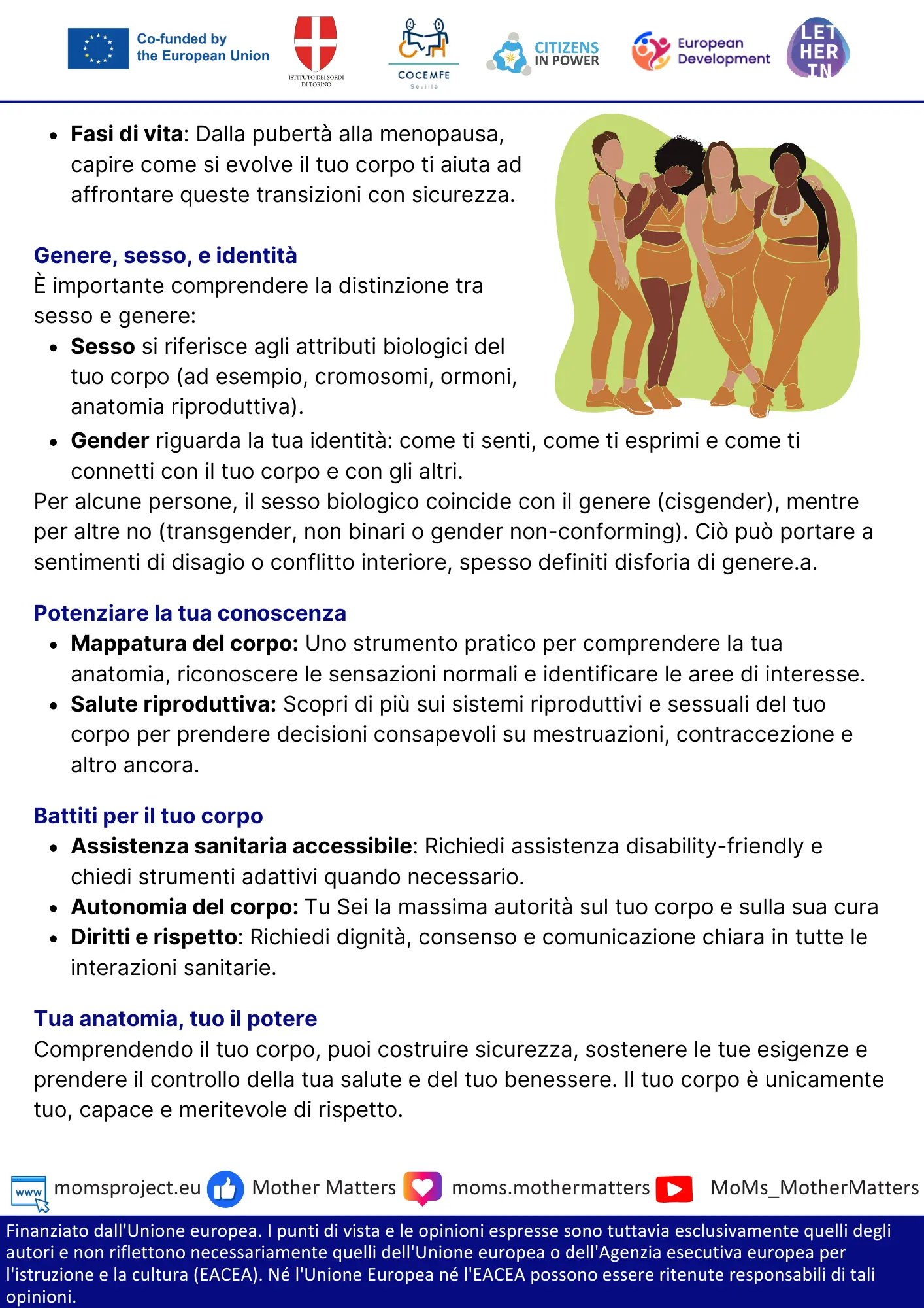 Qui troverai una guida alla maternità. Gli argomenti includono stabilità relazionale, miti sulla gravidanza, rischi, parto e puerperio. Presto troverai anche consigli per il design universale e video nelle Lingue dei Segni!