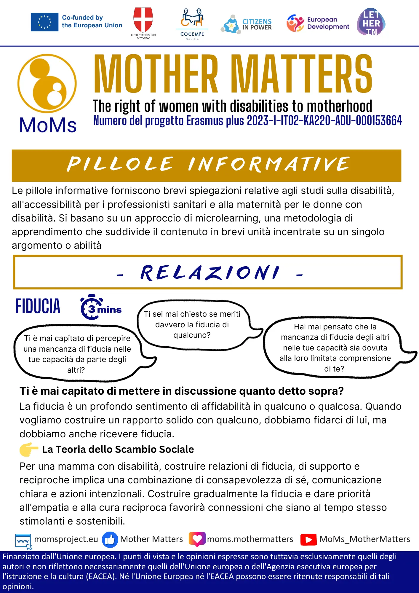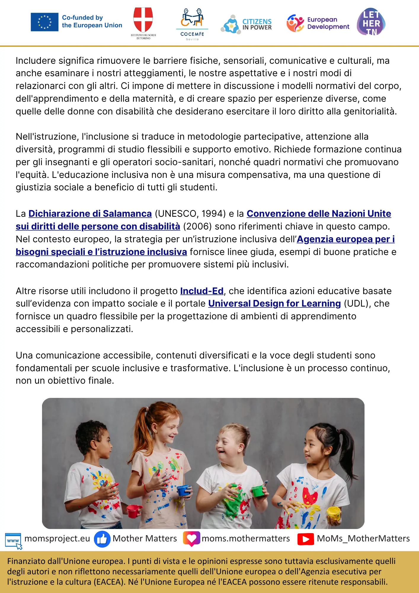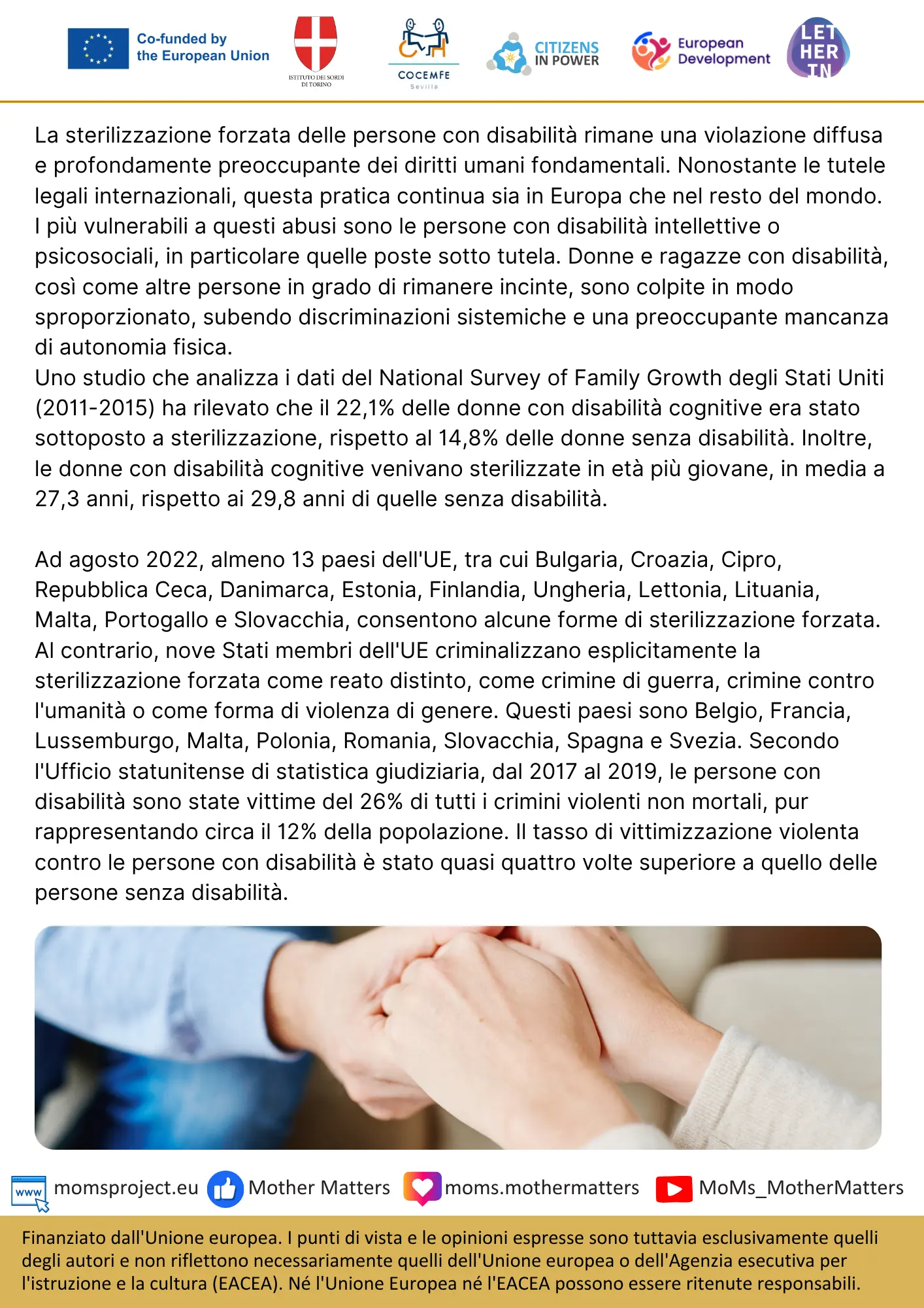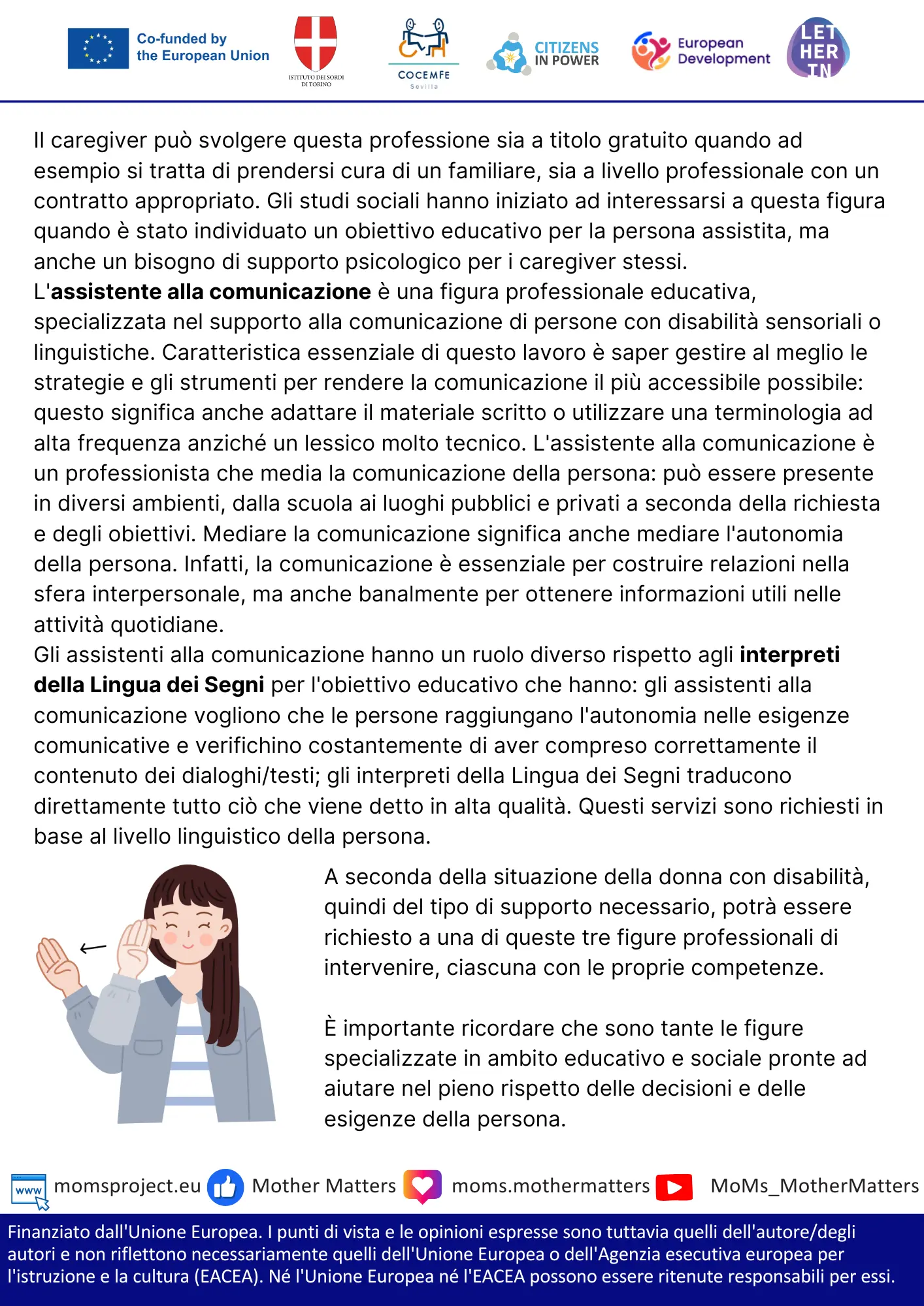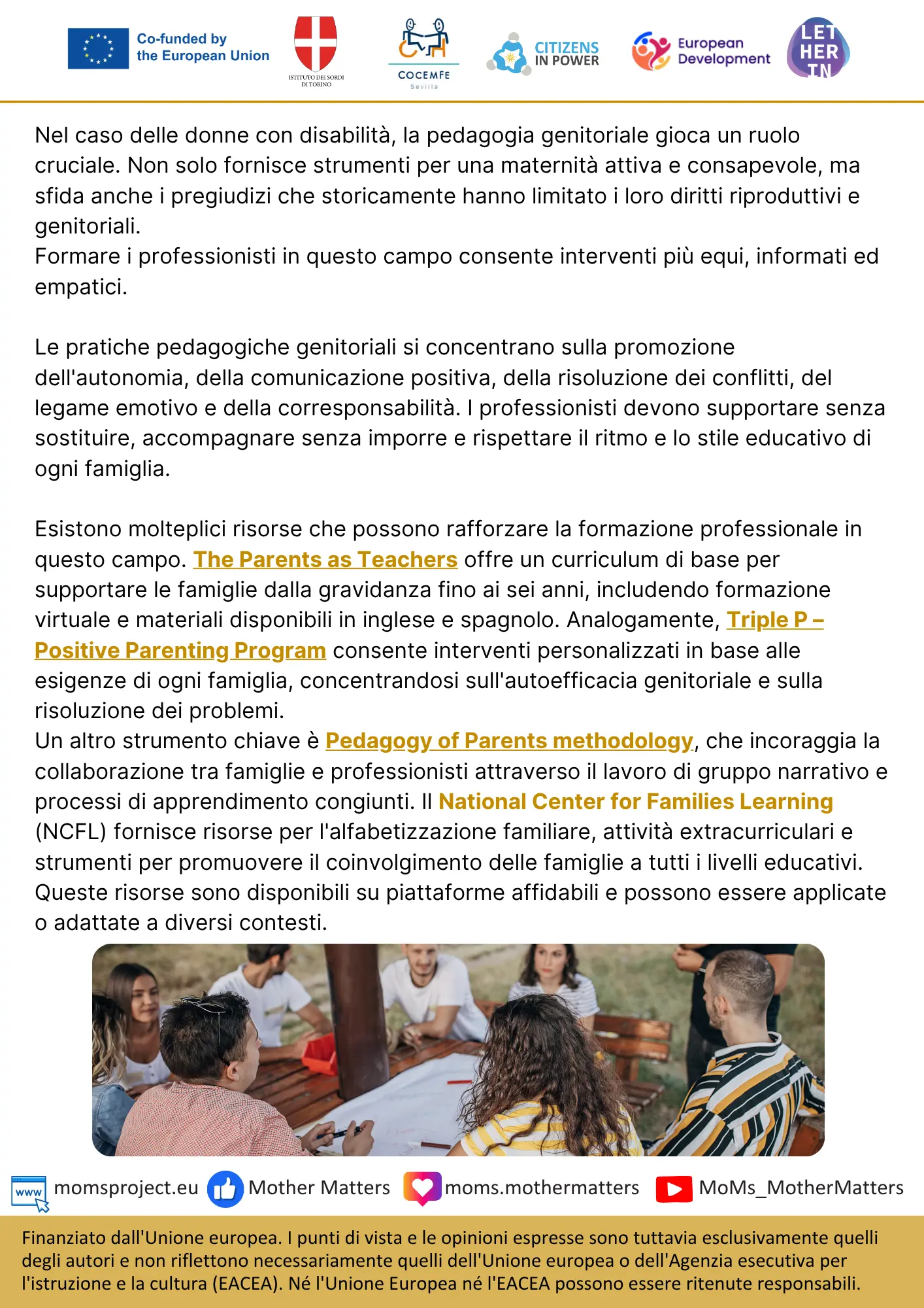 Qui troverai una guida alla maternità. Gli argomenti includono stabilità relazionale, miti sulla gravidanza, rischi, parto e puerperio. Presto troverai anche consigli per il design universale e video nelle Lingue dei Segni!